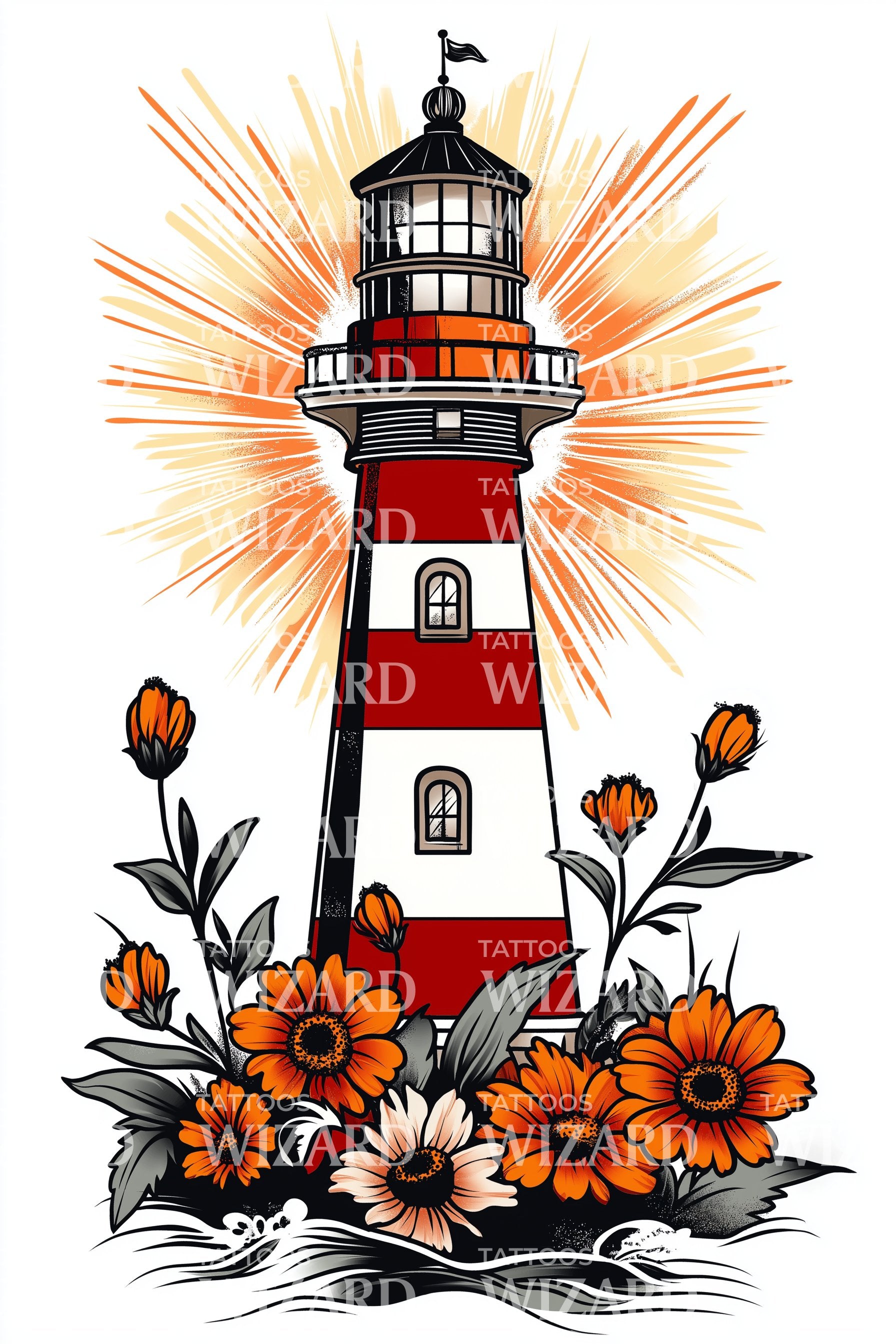 Engedj a kísértésnek ezzel a gyönyörű neotradicionális tetoválásmintával, amely egy világítótornyot ábrázol, az örök útmutatás szimbólumát. A tengeri hangulatot élénk narancssárga árnyalatokkal áldották meg, amelyek magával ragadó érintést kölcsönöznek. Finom virágos részletekkel kiegészítve ez a minta gyönyörűen ötvözi a tengeri és botanikai témákat. Olyan, mint egy jelzőfény, amely a divatkövetőket hívja.