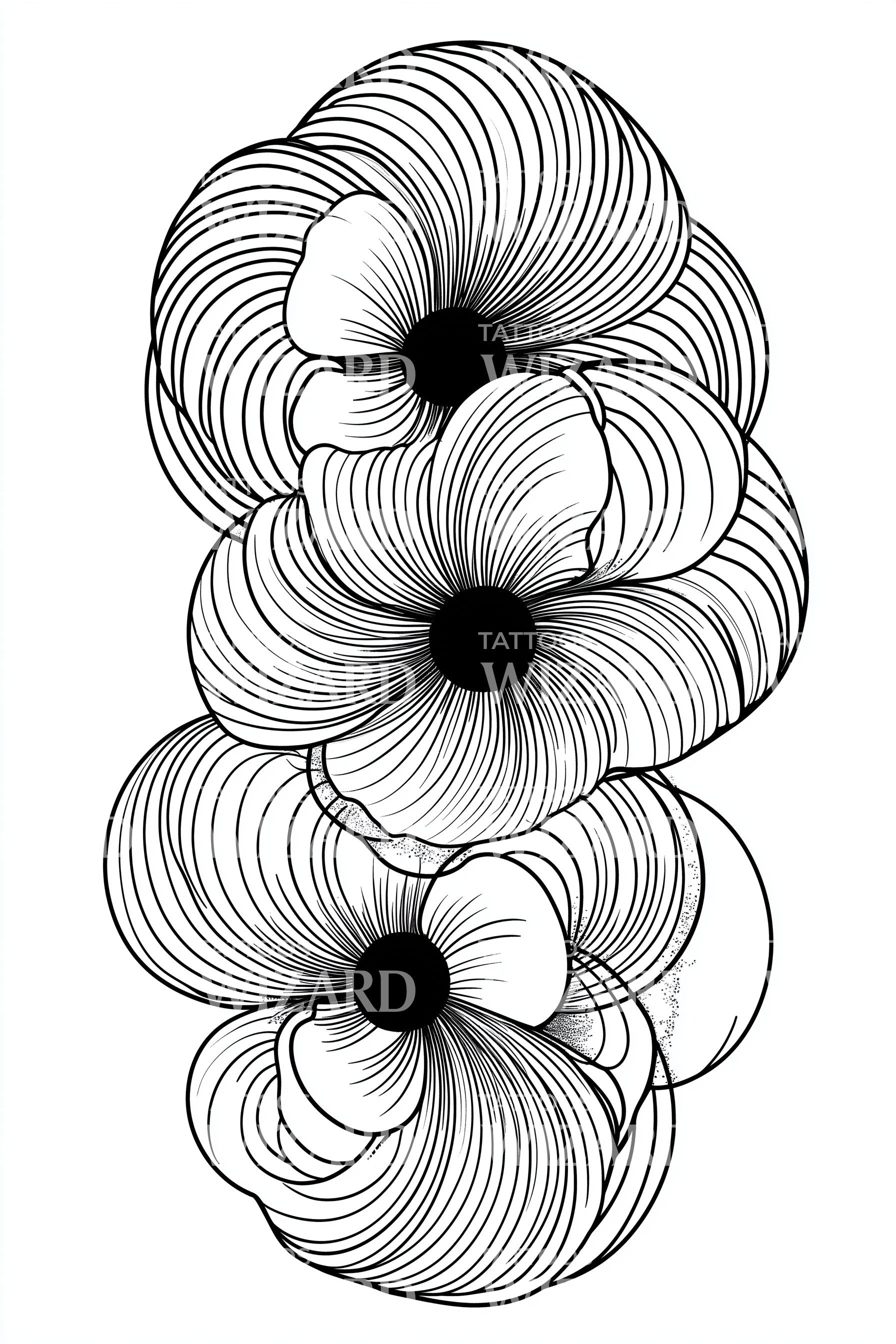 Lépcsőzetes hurkok virág tetoválás minta