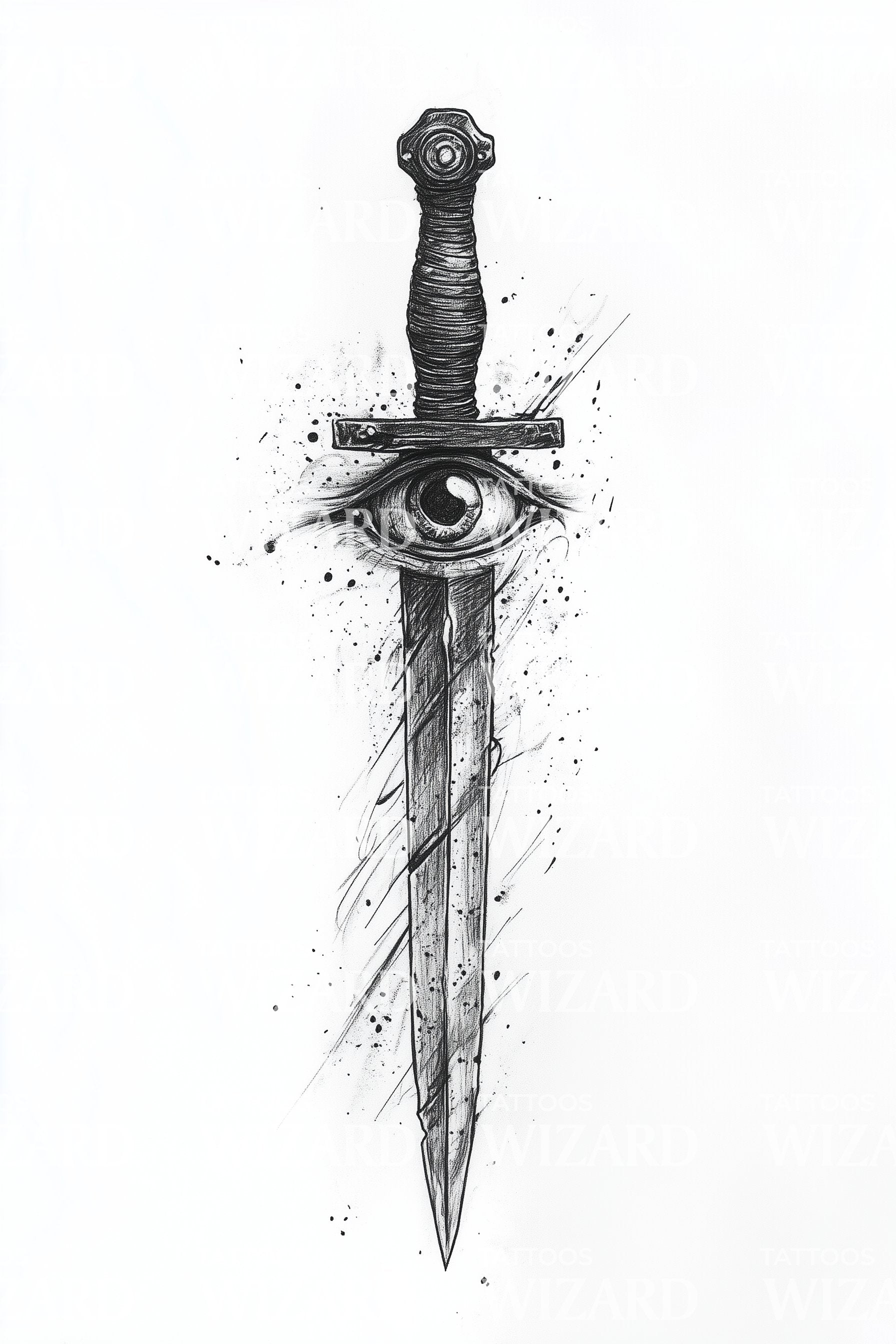 Desain tato blackwork minimalis yang elegan ini menonjolkan kesederhanaan namun memancarkan aura yang mencolok. Menampilkan belati yang diarsir dengan tajam, desain ini melambangkan kekuatan dan perlindungan. Desain bilah yang sederhana memancarkan keindahan yang sederhana, menjadikannya seni tato yang sempurna bagi penggemar konsep yang ramping dan tajam.