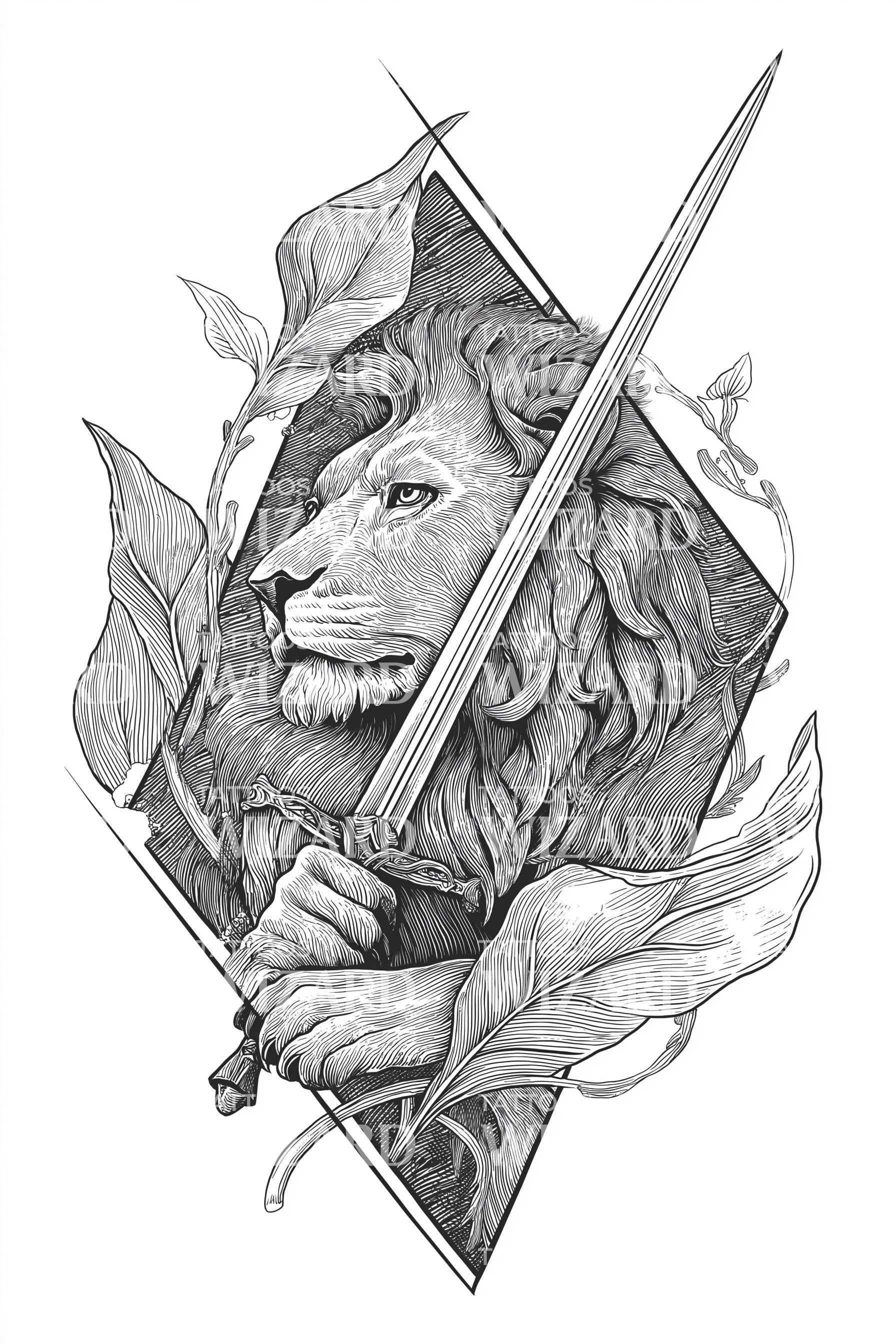 Ilustrasi Tato Pedang Singa Sri Lanka
