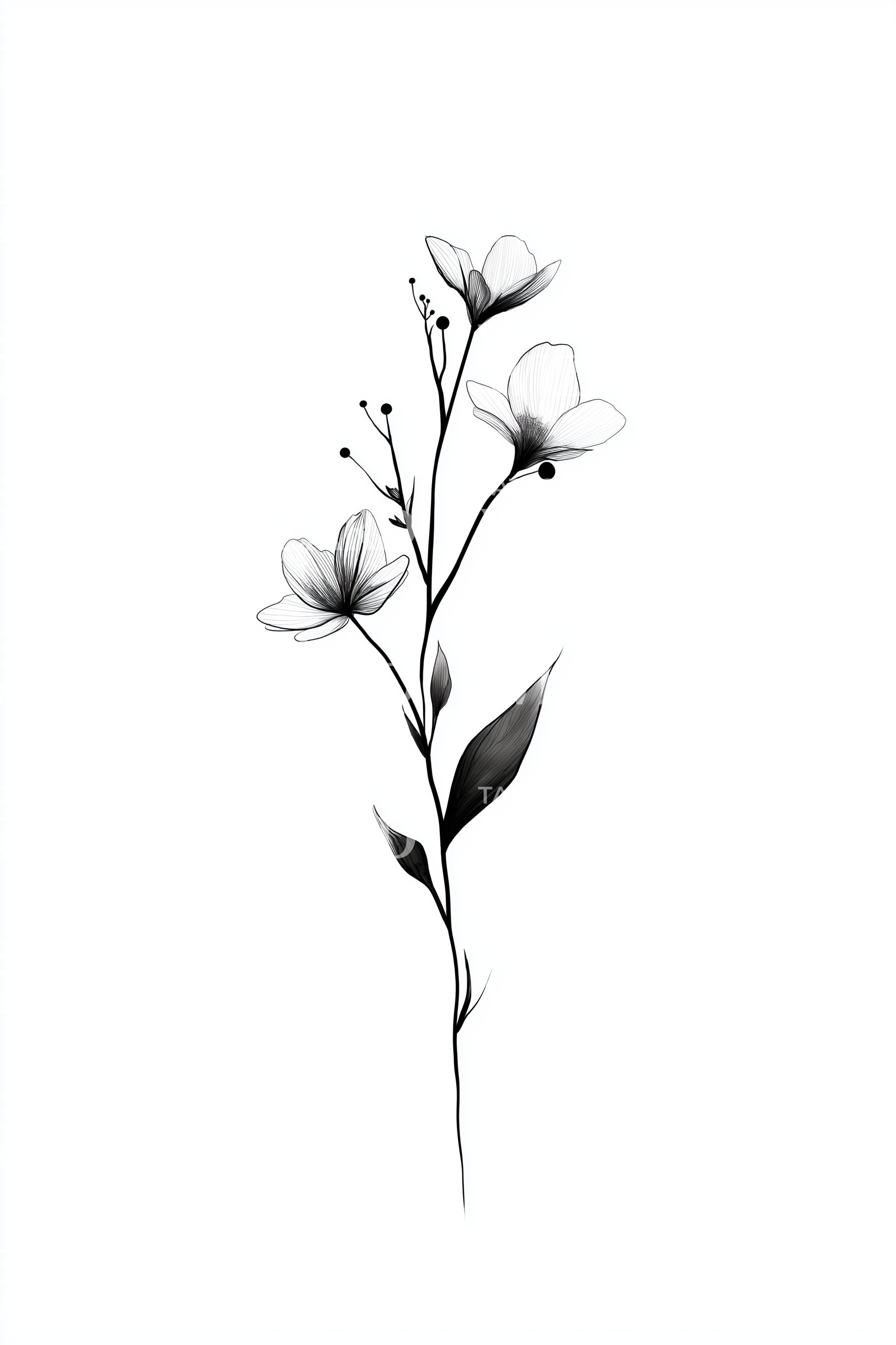 Rasakan keanggunan alami yang halus dengan desain tato bunga fineline kami. Dengan detail yang rumit, menampilkan pola kelopak dan batang yang etereal, ini adalah bukti keahlian garis yang luar biasa. Karya halus ini memadukan keindahan, kelembutan, dan sentuhan permanen yang lembut pada kulit Anda.