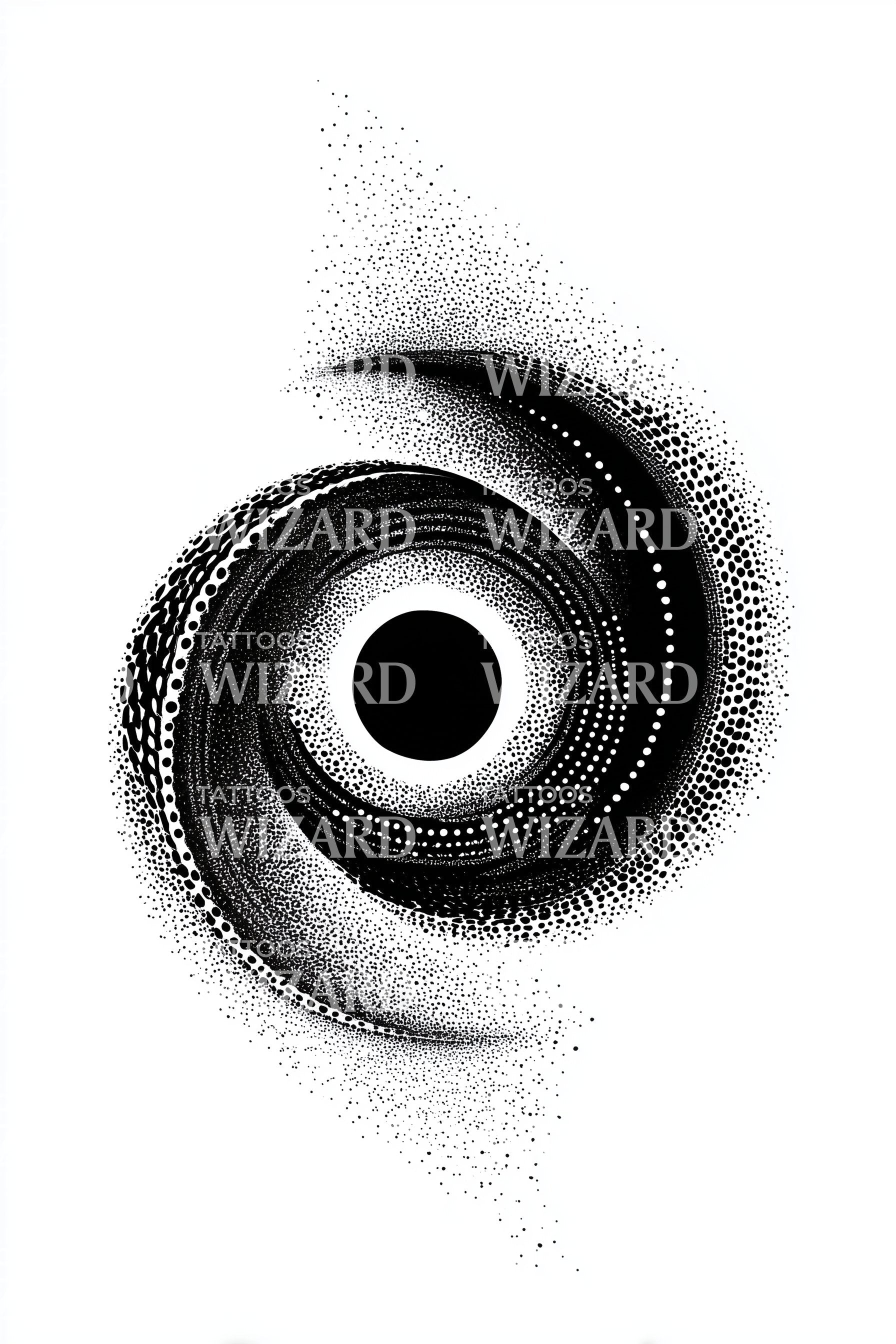 Selami kosmos dengan desain tato dotwork abstrak ini. Memanifestasikan kekosongan tanpa batas dari ruang angkasa, desain ini membentuk pusaran hipnotis dalam struktur cincin. Karya yang samar dan rumit ini melambangkan keindahan dan misteri luas alam semesta, menjadikannya pilihan menarik bagi para penggemar ruang angkasa.