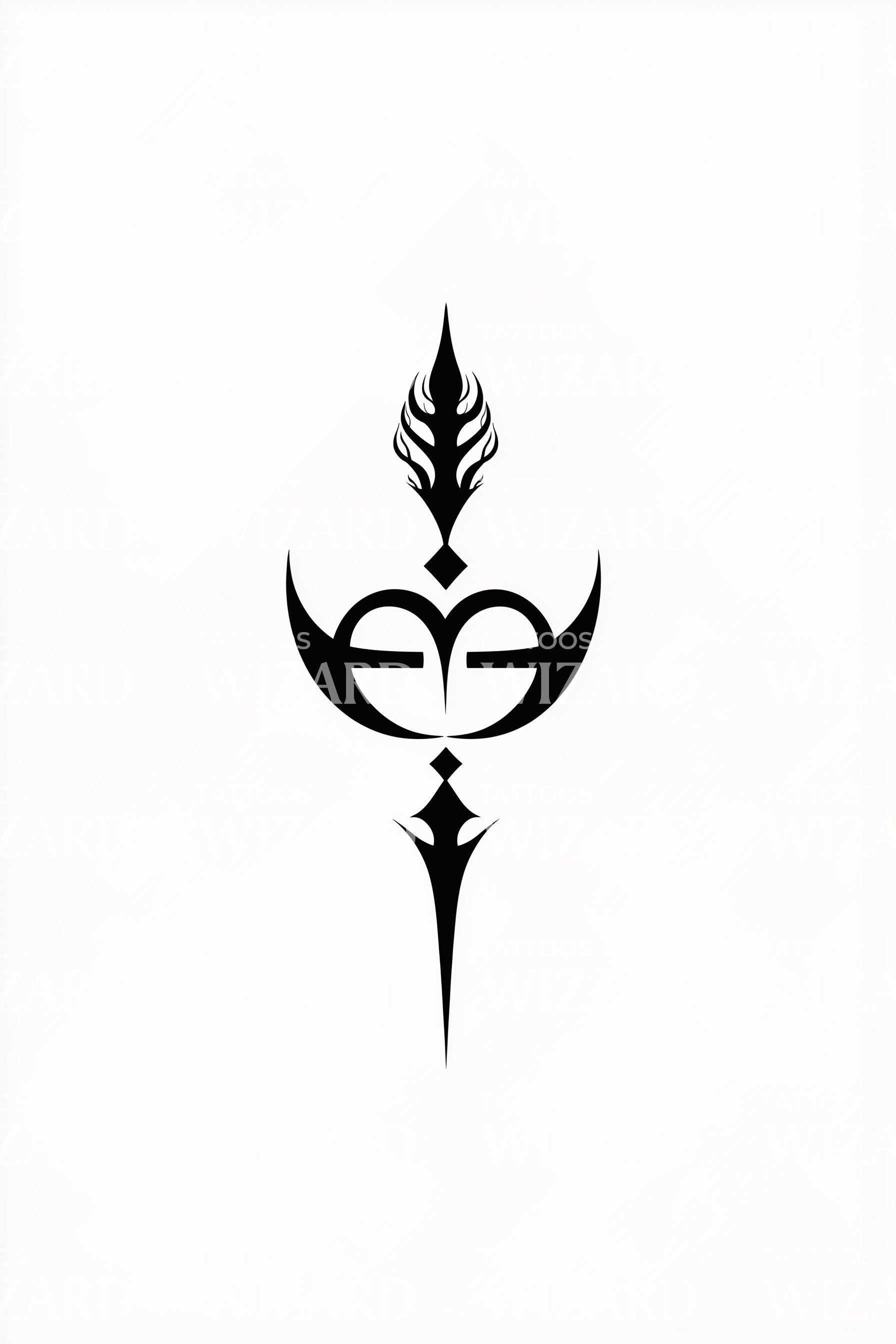Immergiti nello spirito degli antichi guerrieri con questo disegno di tatuaggio tribale. Presenta glifi drammatici di frecce e lance, incarnando un dinamismo audace. Ogni motivo affilato e appuntito è meticolosamente realizzato, rappresentando la ferocia tribale. Un'opera d'arte perfetta per chi si identifica con la forza e l'avventura.