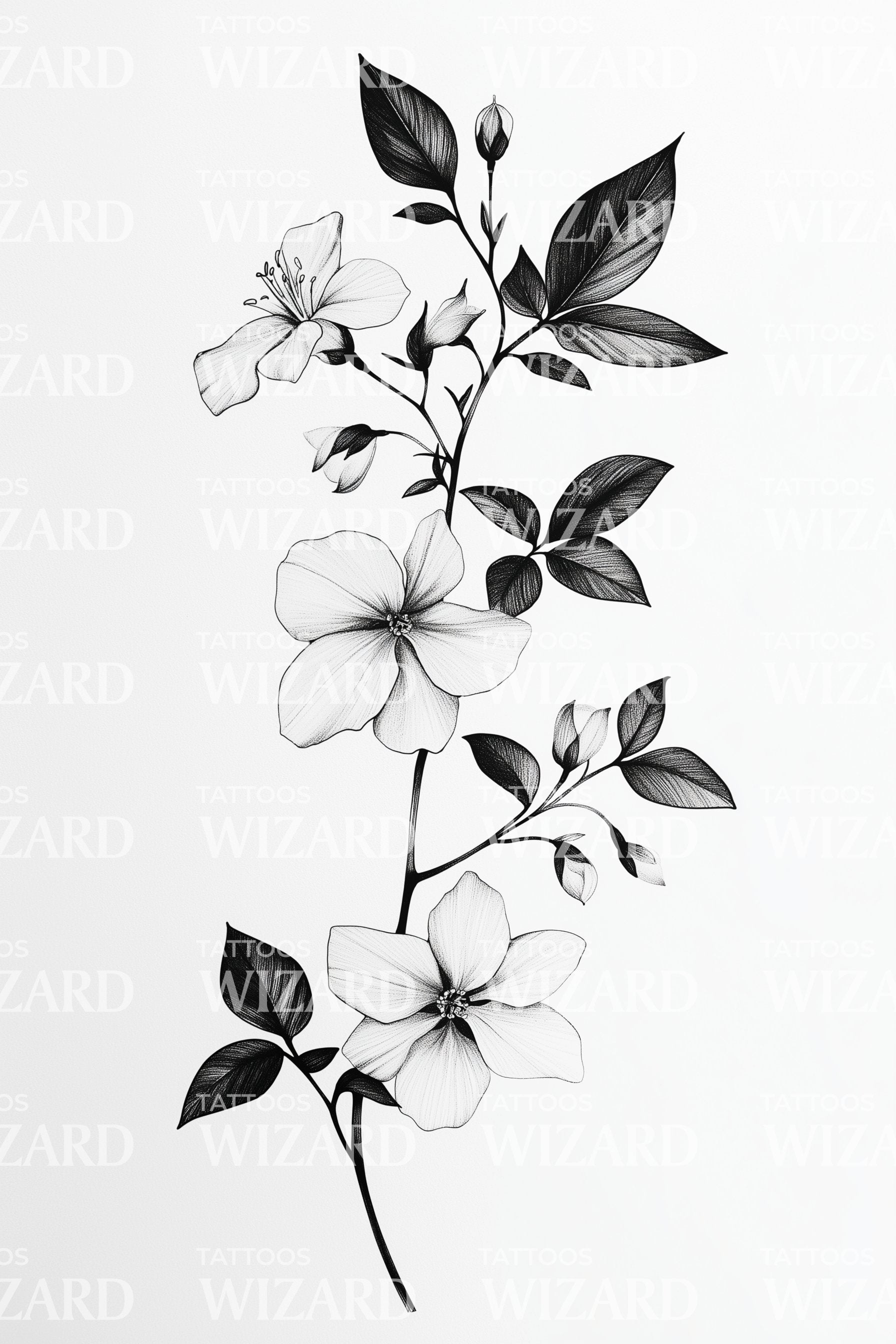 Immergiti nell'eleganza della natura con questo delicato disegno di tatuaggio fineline. Cattura magnificamente un fiore in fiore su un ramo, portando un tocco di fascino floreale sulla tua pelle. La sua estetica minimalista ne esalta la raffinatezza, creando un'affermazione personale sottile ma affascinante.