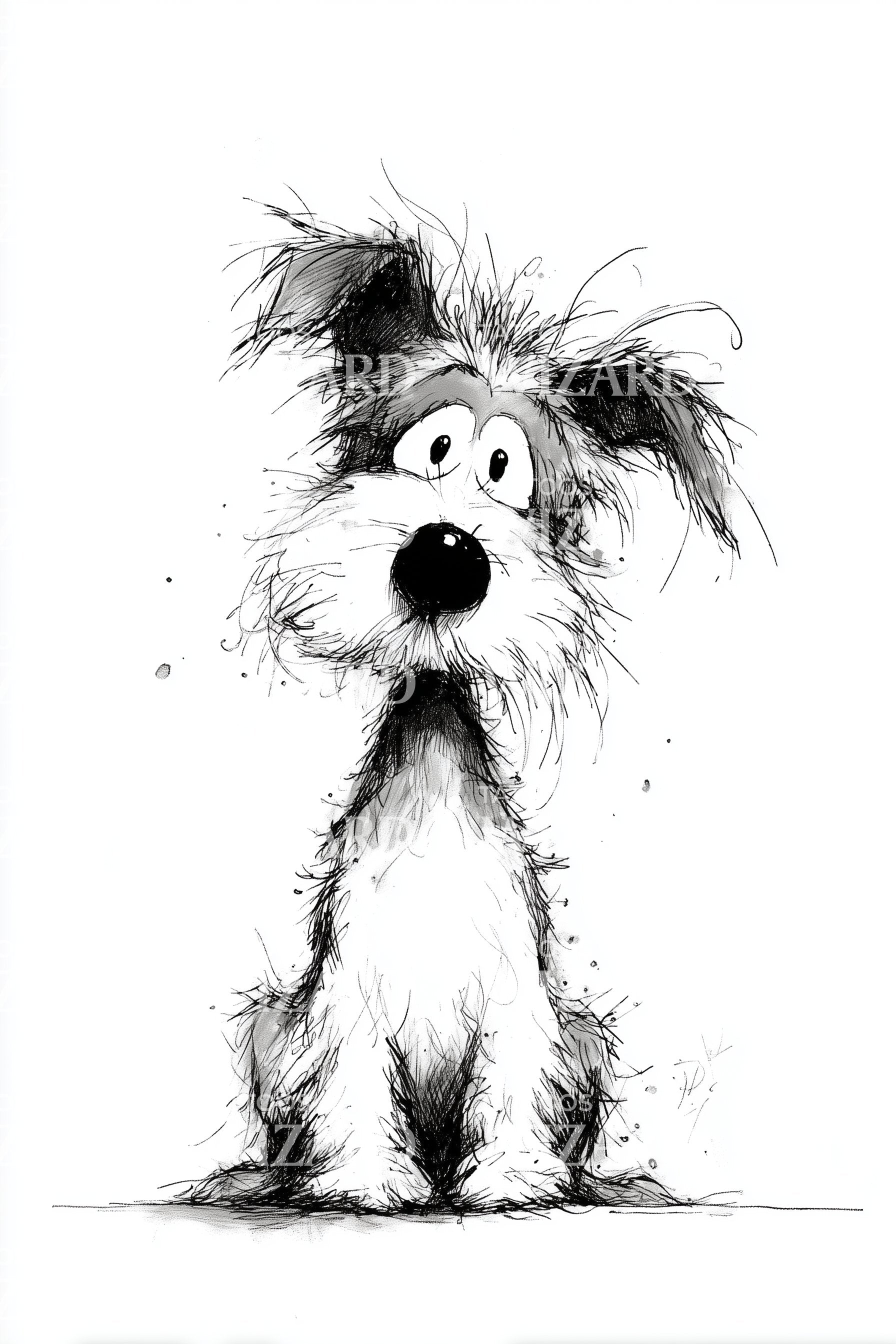 Scatena il tuo amore per i cani con questo disegno tatuaggio giocoso. Realizzato in uno stile schizzato delizioso, mostra un cane cartone animato trasandato che emana divertimento e malizia. Perfetto per far emergere lo spirito giovanile e avventuroso che è in te. Distinguiti con questo pezzo di arte tatuata originale!