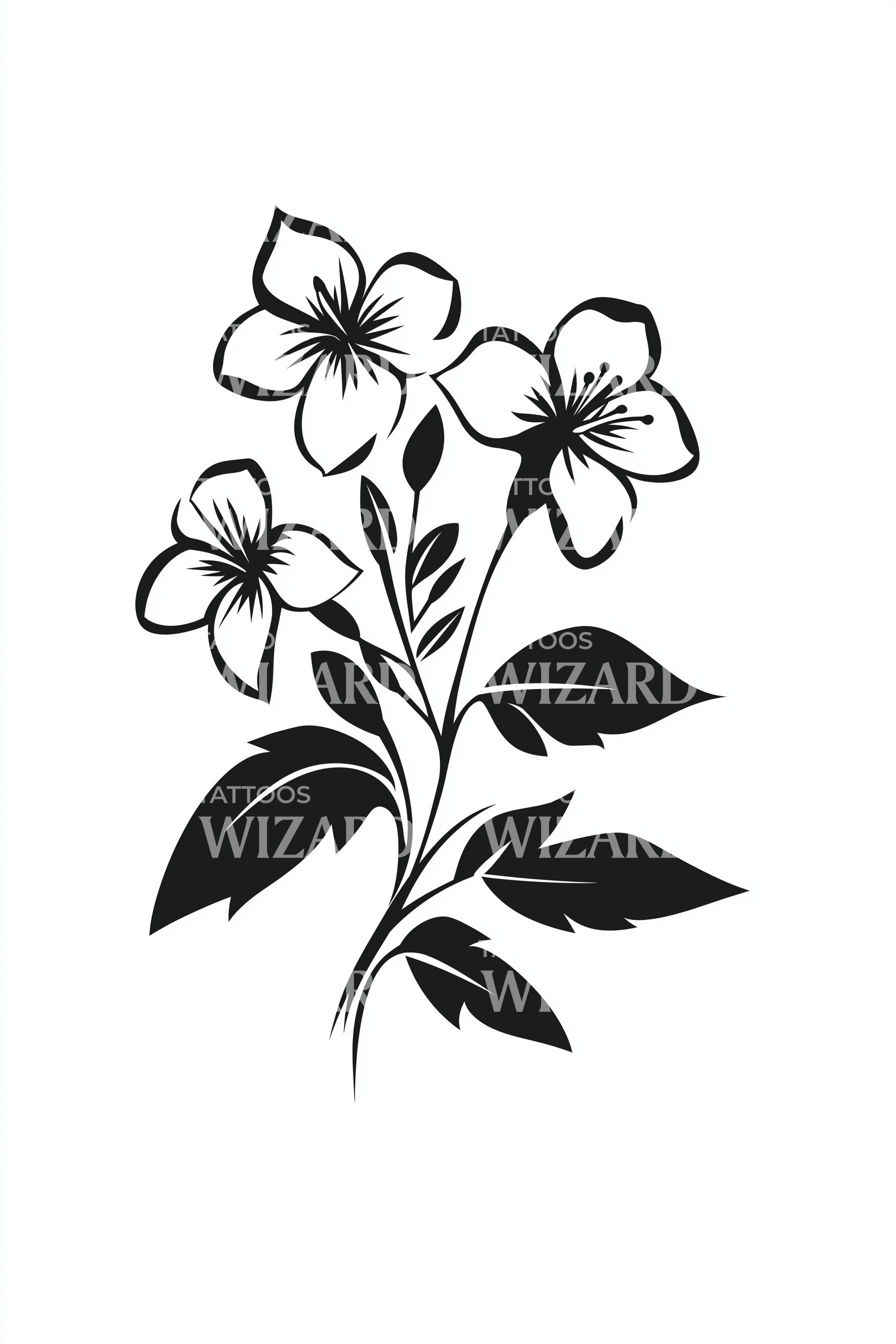 Questo disegno di tatuaggio fineline offre una rappresentazione minimalista ma delicata di un ramo di gelsomino. Realizzato con maestria per l'appassionato di botanica, le sfumature del seducente fiore di gelsomino sono catturate con nostalgia. Questo pezzo intricato promette non solo di accentuare ma di celebrare la tua essenza unica.