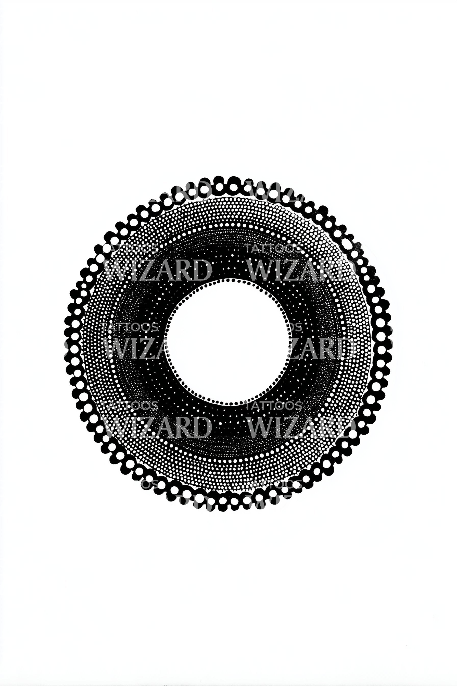 Immergiti nelle meraviglie del cosmo con questo disegno di tatuaggio dotwork. Il motivo dell'eclissi si intreccia con motivi astratti, formando un cerchio e un anello celestiali. È un'affascinante fusione di oscurità e spazio, che evoca la bellezza misteriosa e il vuoto infinito dell'universo.