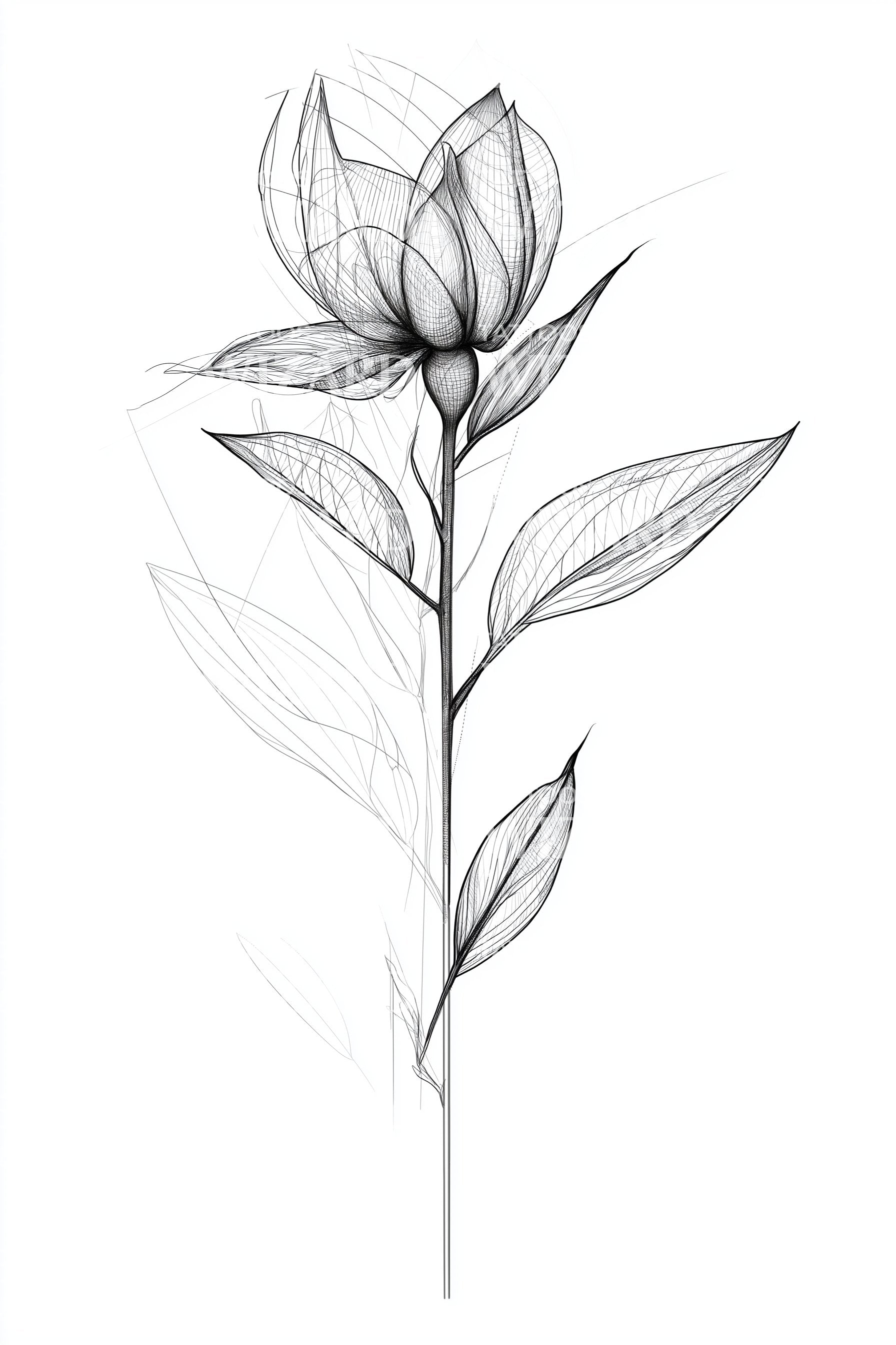 Questo disegno di tatuaggio fineline emana un'eleganza sublime con la sua rappresentazione botanica semplice. Realizzato meticolosamente, comprende un bocciolo e uno stelo squisiti, che mostrano una grazia senza pari. Cattura manifestamente il puro fascino della natura, perfetto per chi cerca un'arte corporea sobria ma raffinata.