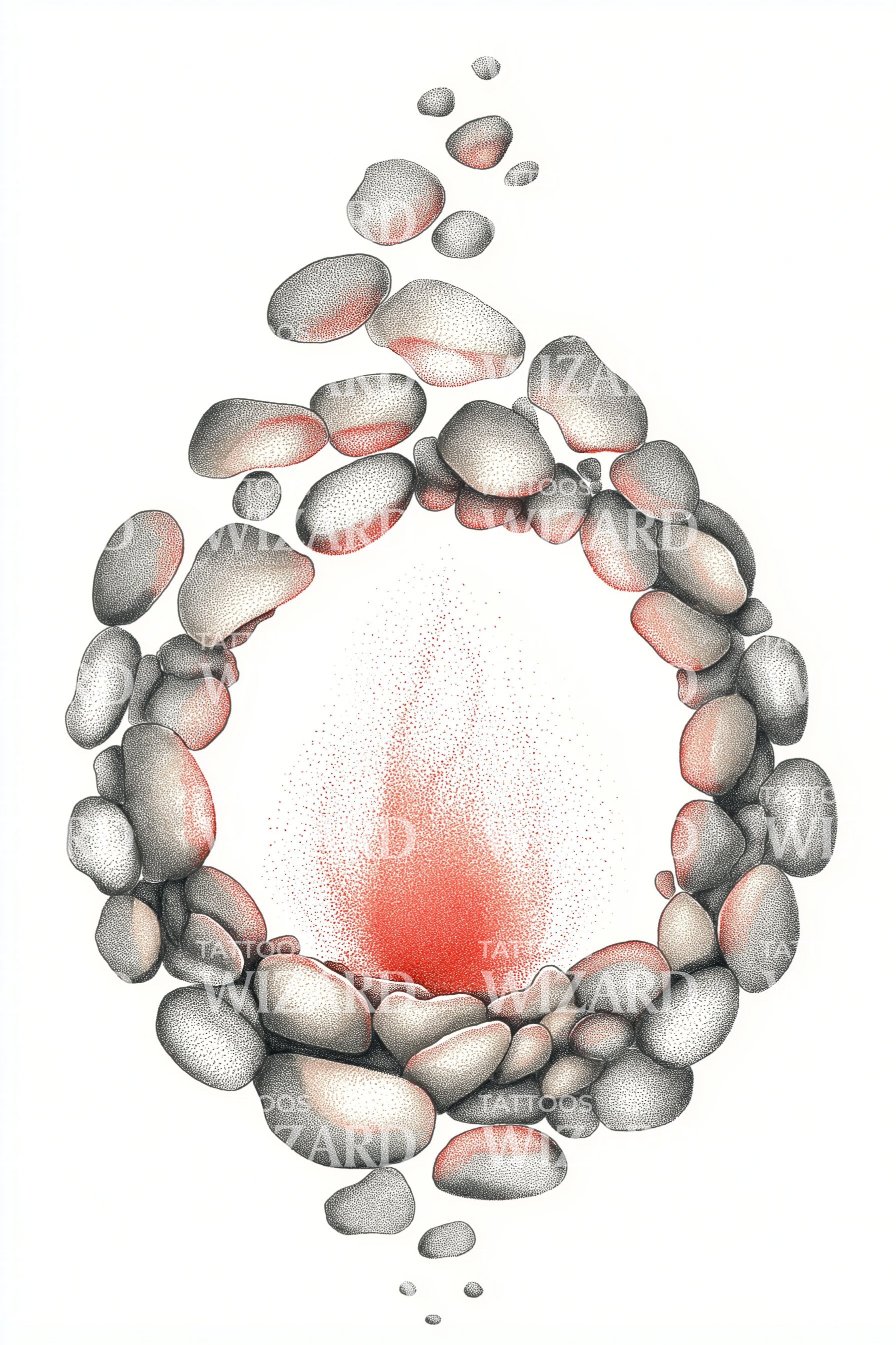 Pebbles and stones gather into a circle, not to imprison the glow but to give it a home. Embers rise like unsaid prayers, heat turning survival into ceremony. For the one who knows softness can be forged. “Let the quiet burn, and the wild return.”
