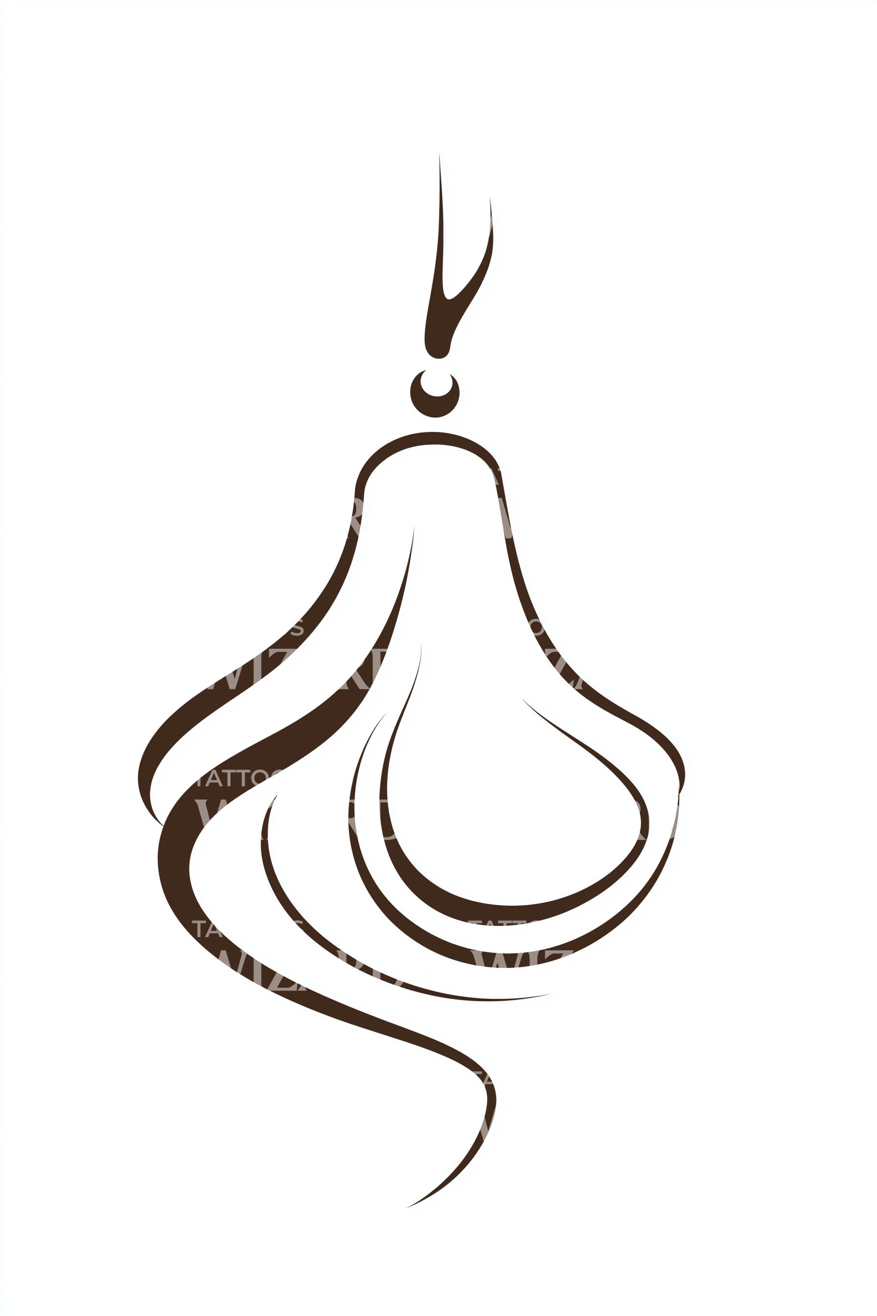 Vivi l'eleganza dell'arte astratta con questo disegno di tatuaggio finemente realizzato. Caratterizzato da linee fluide, questo design incorpora armoniosamente una campana, infondendo un'eccezionale fusione di raffinatezza e fascino. Un capolavoro fineline, è perfetto per chi cerca un delicato accenno di mistero ed eleganza.