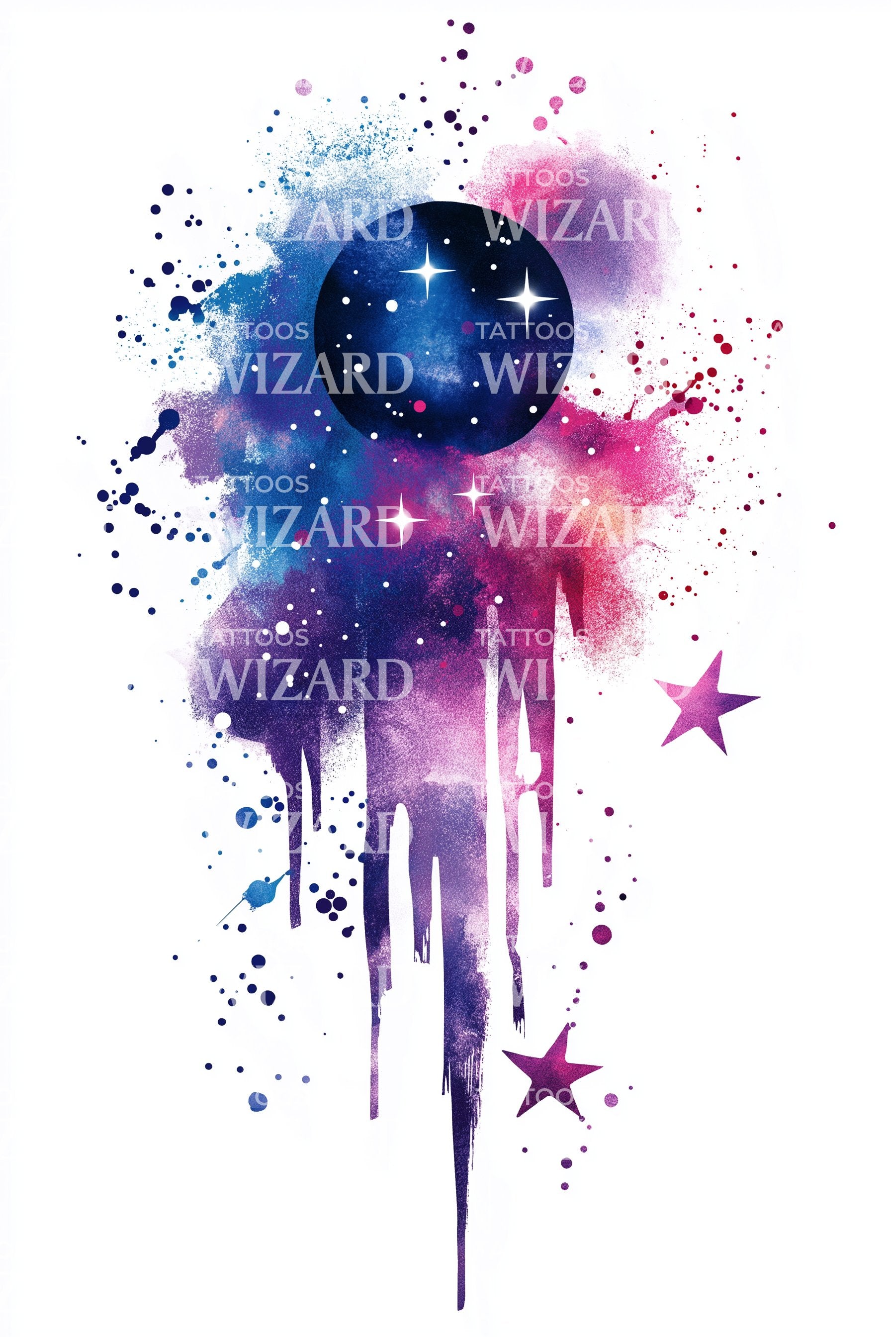 Vivi l'enigma del cosmo con questo Tatuaggio Sfera Galassia ad Acquerello. Questo design unico trasuda fascino celestiale, creando una fusione squisita di elementi spaziali mistici. Le vivide tonalità cosmiche e gli effetti sognanti ad acquerello ti trasportano in galassie magiche lontane dalla nostra portata.