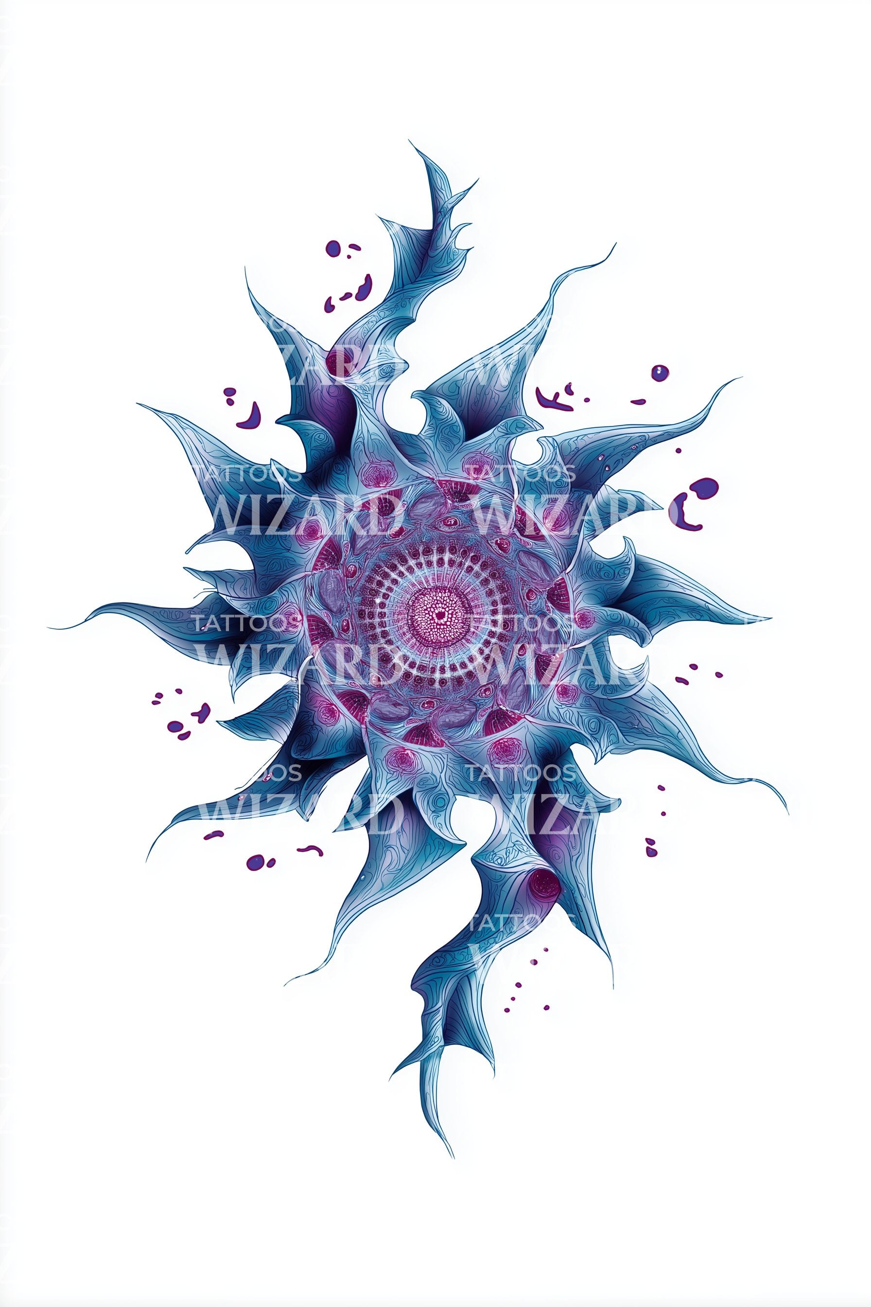 Abbraccia il tuo lato stellare con questo design di tatuaggio ad acquerello astratto! Spruzzato con l'eterea bellezza della galassia e la nebulosa ipnotica, questo design è un'ode al cosmo. Con tonalità di blu che evocano immagini di corpi celesti, è una fuga permanente nello spazio sulla tua pelle.