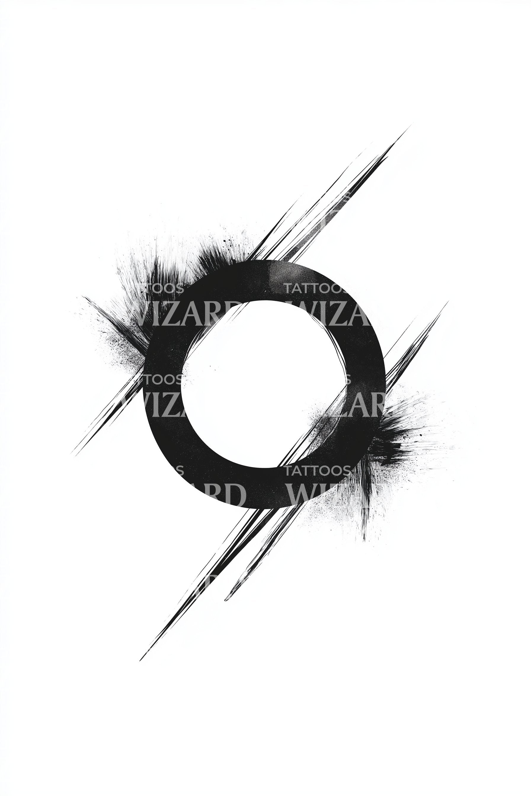 Immergiti nella tranquillità zen con questo disegno di tatuaggio blackwork. Ispirato all'enso, rappresenta un cerchio dipinto a pennello che simboleggia energia e illuminazione. Questo design dinamico colma il divario tra semplicità e profondità, una testimonianza della resilienza dell'anima. Ideale per chi cerca un equilibrio tra fascino estetico e profondità spirituale.