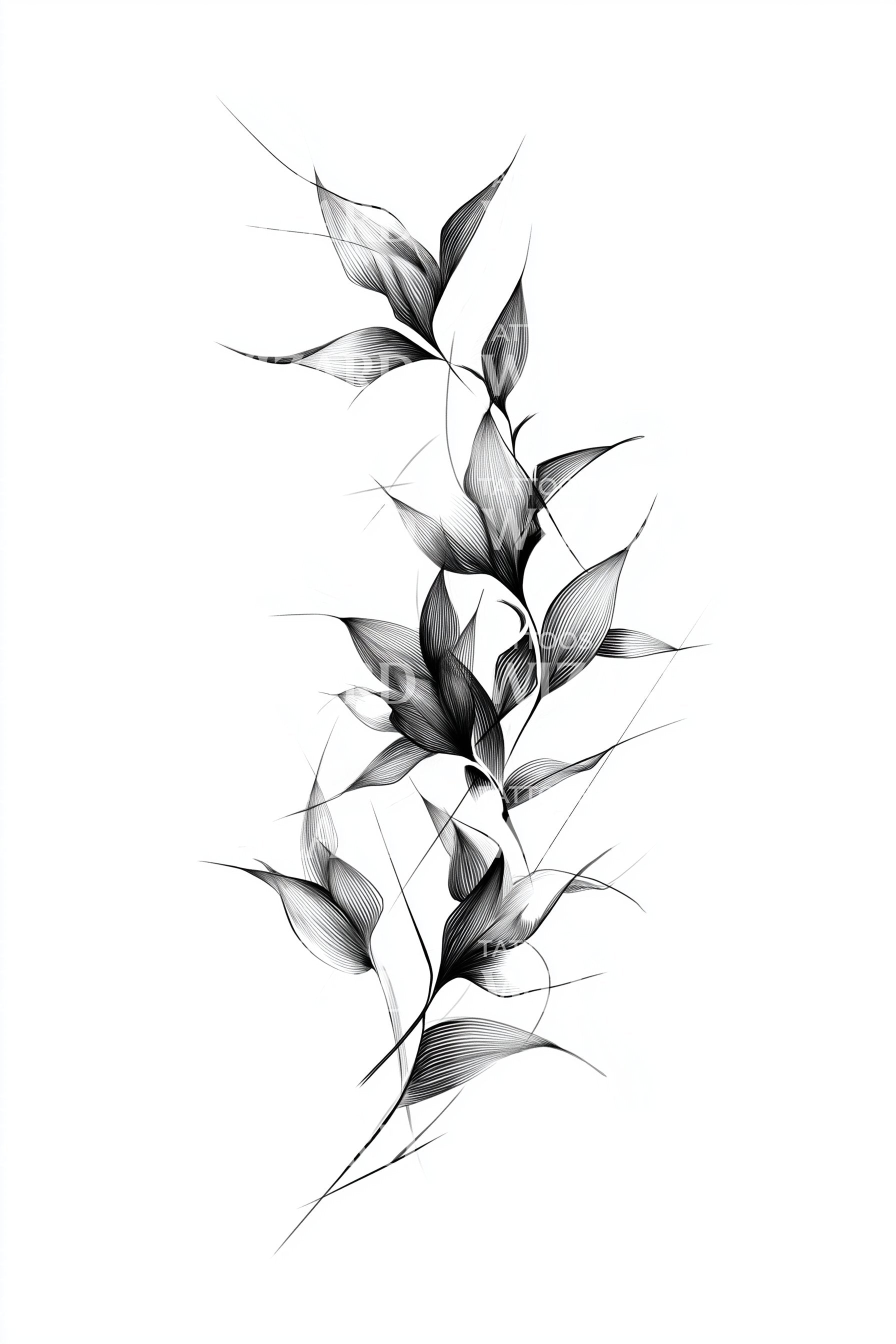 Immergiti nella bellezza della natura con questo elegante e minimalista tatuaggio blackwork. La nostra estetica botanica si fonde armoniosamente con motivi di foglie e rami, tutti realizzati con dettagli di inchiostro precisi - un'opera d'arte che rende omaggio alla semplicità della natura. Trasmettendo un senso di serenità, questo design per tatuaggio è un immediato spunto di conversazione.
