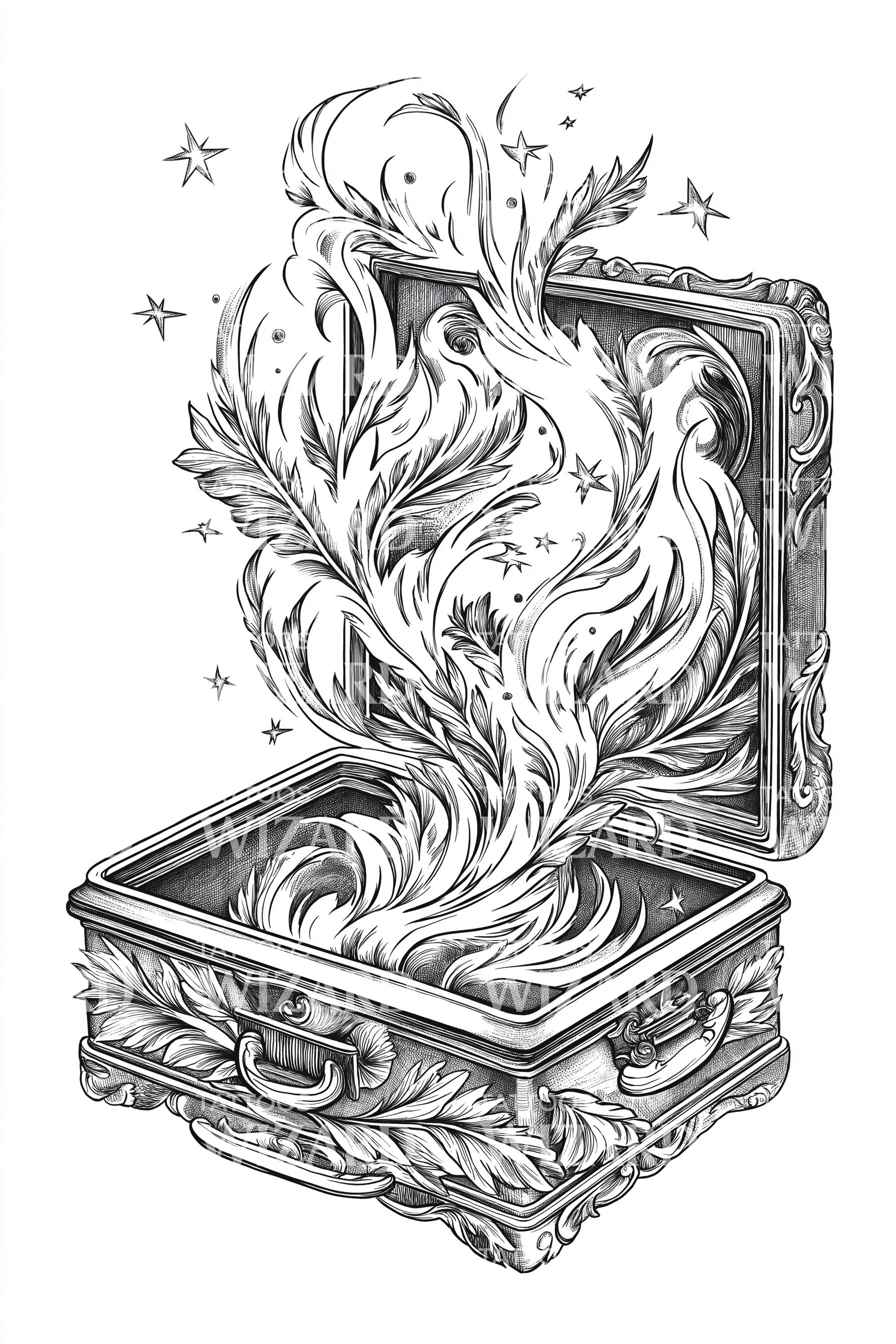 Enchanted Feathered Keepsake Box Tattoo Illustration