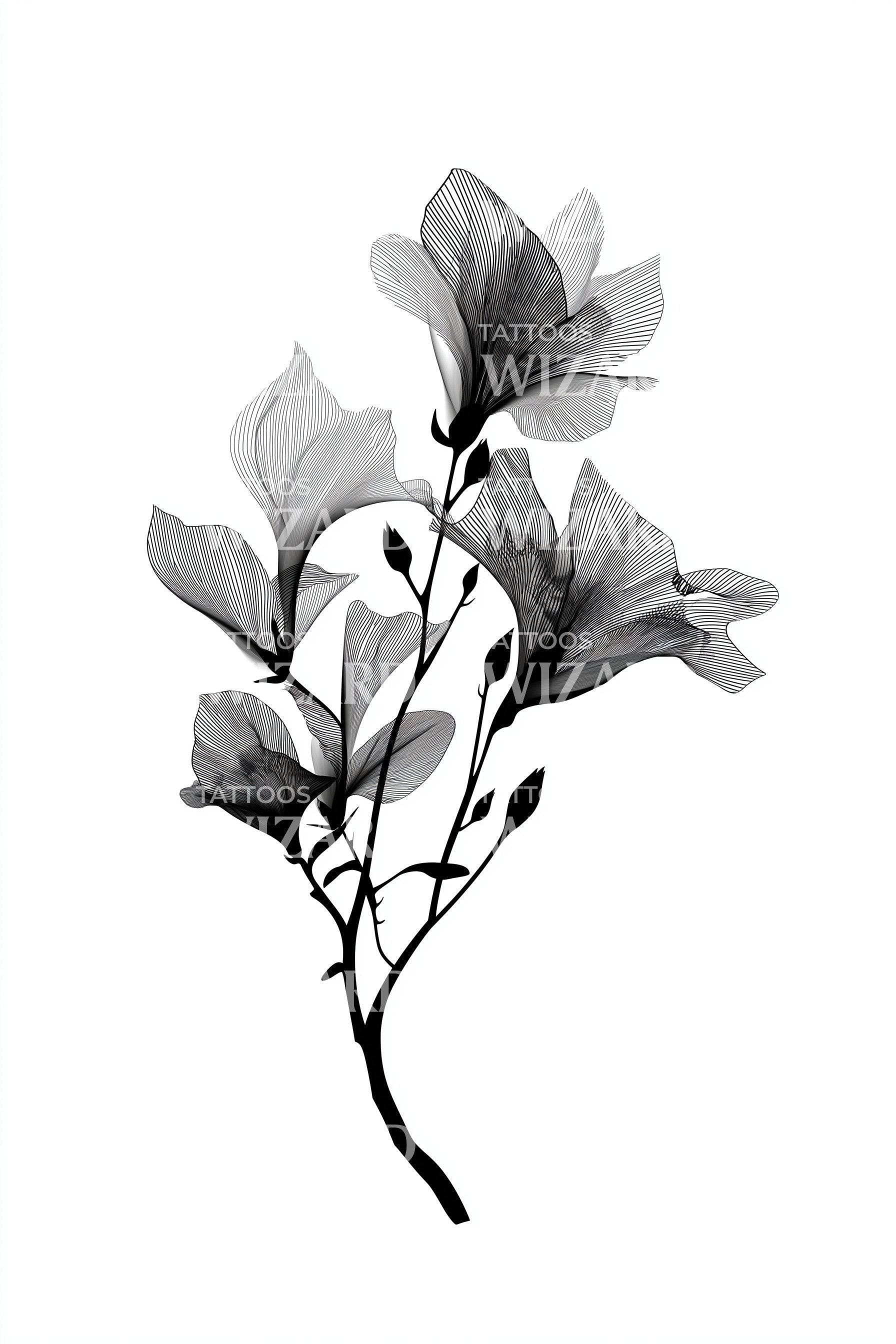 Design di tatuaggio a linea sottile con ramo di magnolia