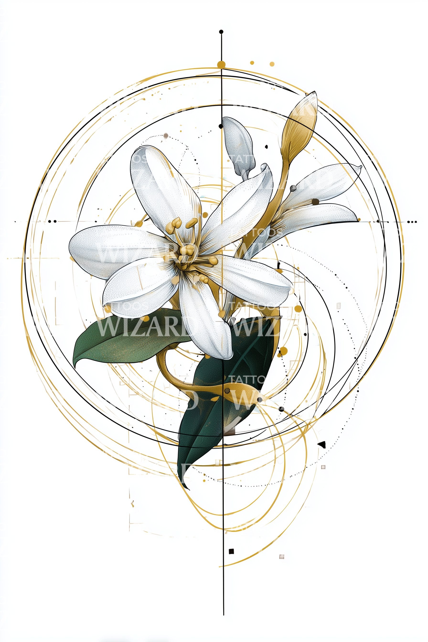 Illustrazione Tatuaggio Magnolia ad Acquerello in Orbita