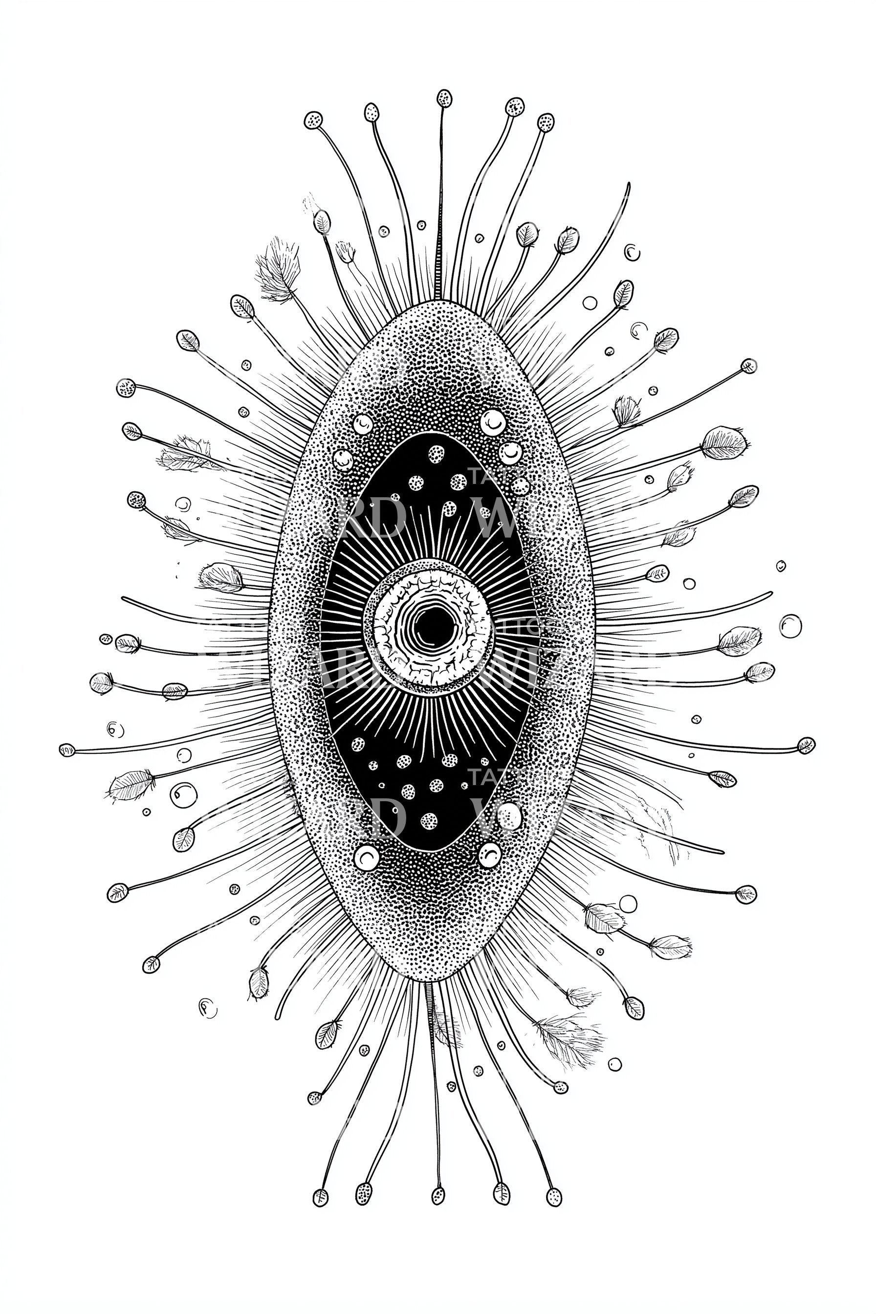 An eye held in an oval of dotwork radiance, where spikes reach like questions you refuse to silence. For the mystic who trusts their inner weather, who names sensitivity as power. Poetic line: Let the pupil be a small sun, and you its steady orbit.