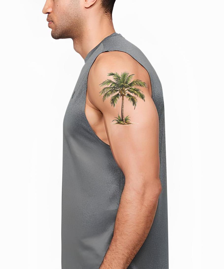 Immergiti nel verde della natura con questo design di tatuaggio di palma ad acquerello del rinomato artista del tatuaggio, John. Questo pezzo ispirato organicamente abbina un effetto acquerello dinamico a delicate immagini di palme. È un'ottima scelta per coloro che apprezzano la bellezza naturale e l'expertise artistica.