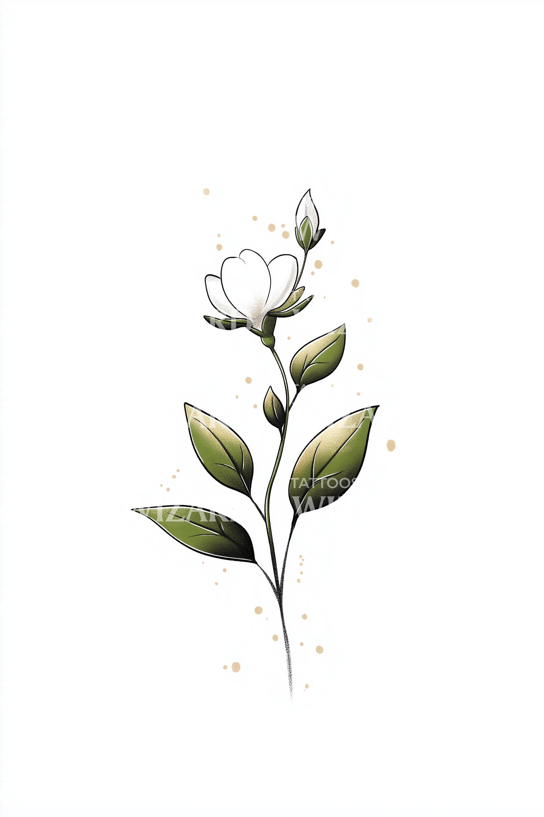 Questo affascinante design di tatuaggio minimalista vanta delicati elementi fineline, forme piccole e minuscoli puntini, tutti splendidamente uniti in un'estetica ispirata a uno stelo. Immergiti nel mondo dell'arte minimalista che parla con forza attraverso la sua semplicità e grazia. Libera il tuo narratore interiore con questo pezzo elegante e discreto.