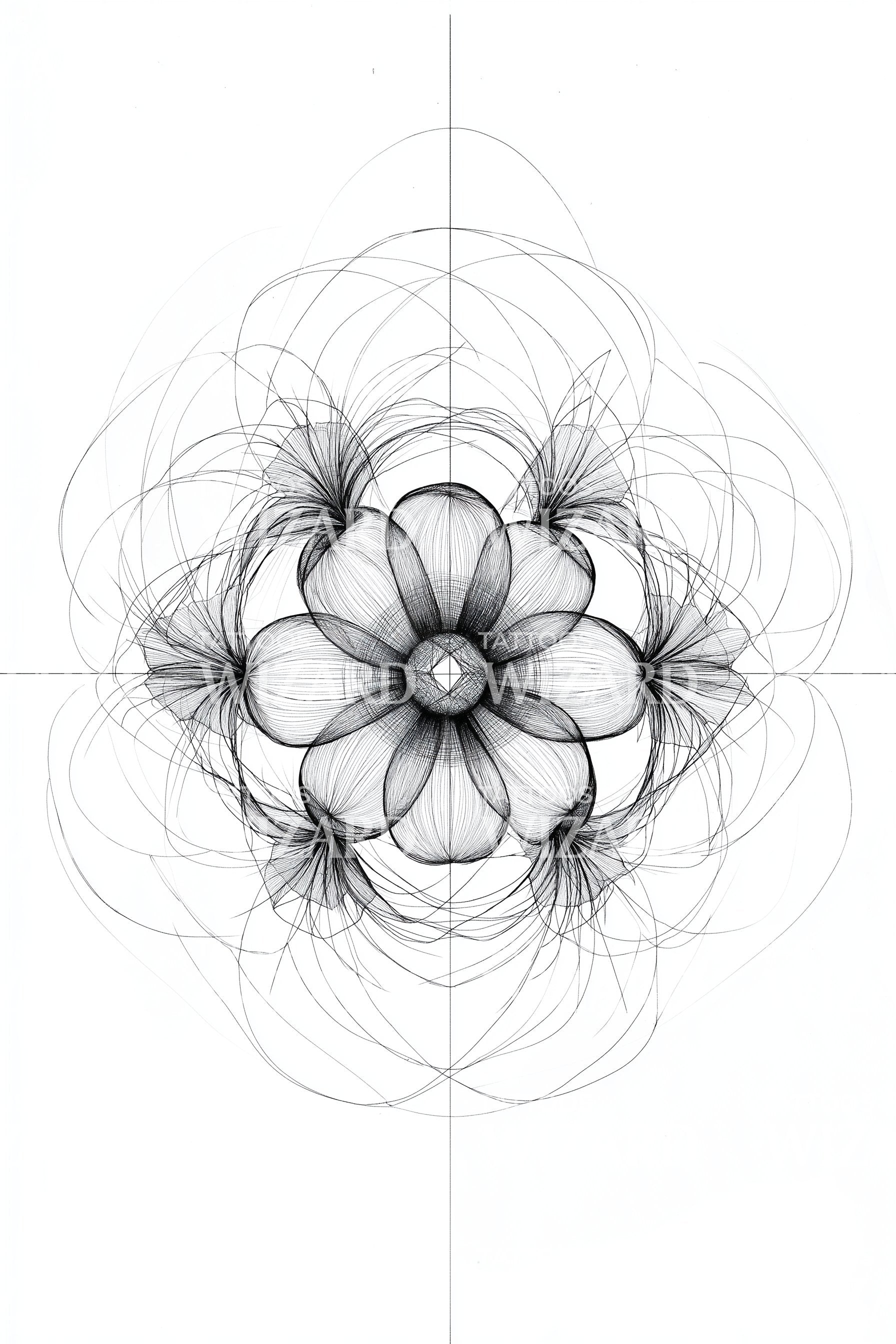 Immergiti nella geometria sacra del nostro disegno tatuaggio mandala. Caratterizzato da motivi perfettamente simmetrici, si apre come un fiore dal centro, rotondo nella forma come l'universo stesso. Adornati con questo cerchio di illuminazione, una vera testimonianza della bellezza del motivo, della spiritualità e dell'estetica.