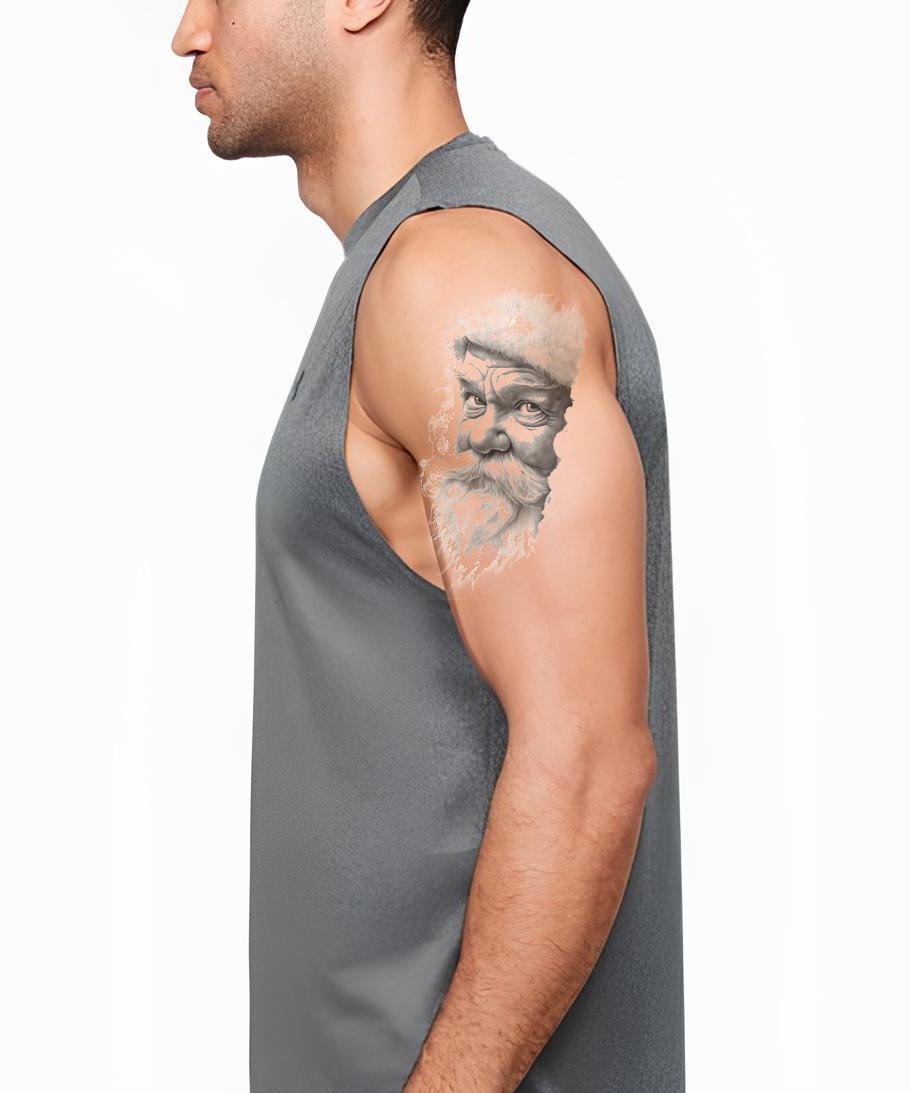 Black&grey portraiture brings Santa to life, etched like a refined sketch. Textured hat, twinkling eyes, and a flowing beard glow through soft shading. Symbolizing generosity, wisdom, and enduring holiday wonder, this piece wraps the wearer in nostalgia and quiet joy, carrying Christmas spirit and kindness year-round, with grace.