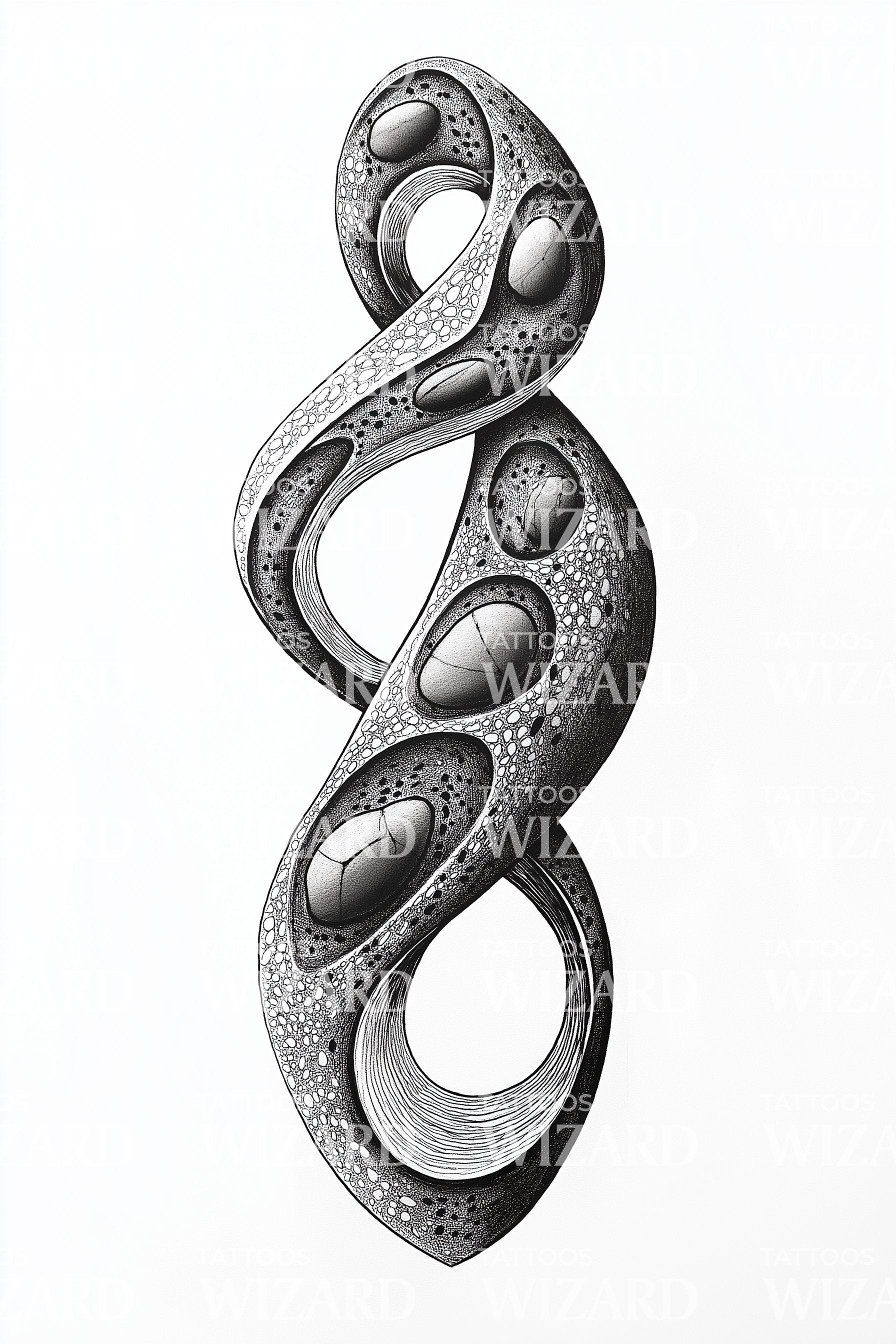 Knot and loop become a vow to keep moving without losing yourself, stone by stone, breath by breath. Dotwork turns pressure into prayer, an abstract infinity that admits scars and still holds. For the ones who rebuild quietly, “let the loop remember your strength.”