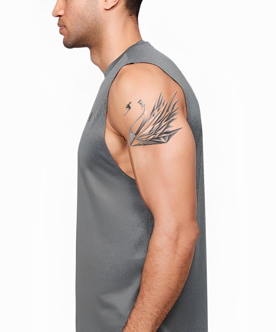 Immergiti in un mondo di profonda bellezza e arte con questo design di tatuaggio illustrativo. Mettendo in risalto un elegante cigno origami, cattura l'eleganza intrinseca dell'arte della piegatura della carta esperta. Questo pezzo squisito è una testimonianza di raffinatezza e attenzione ai dettagli, adatto a qualsiasi appassionato di tatuaggi.