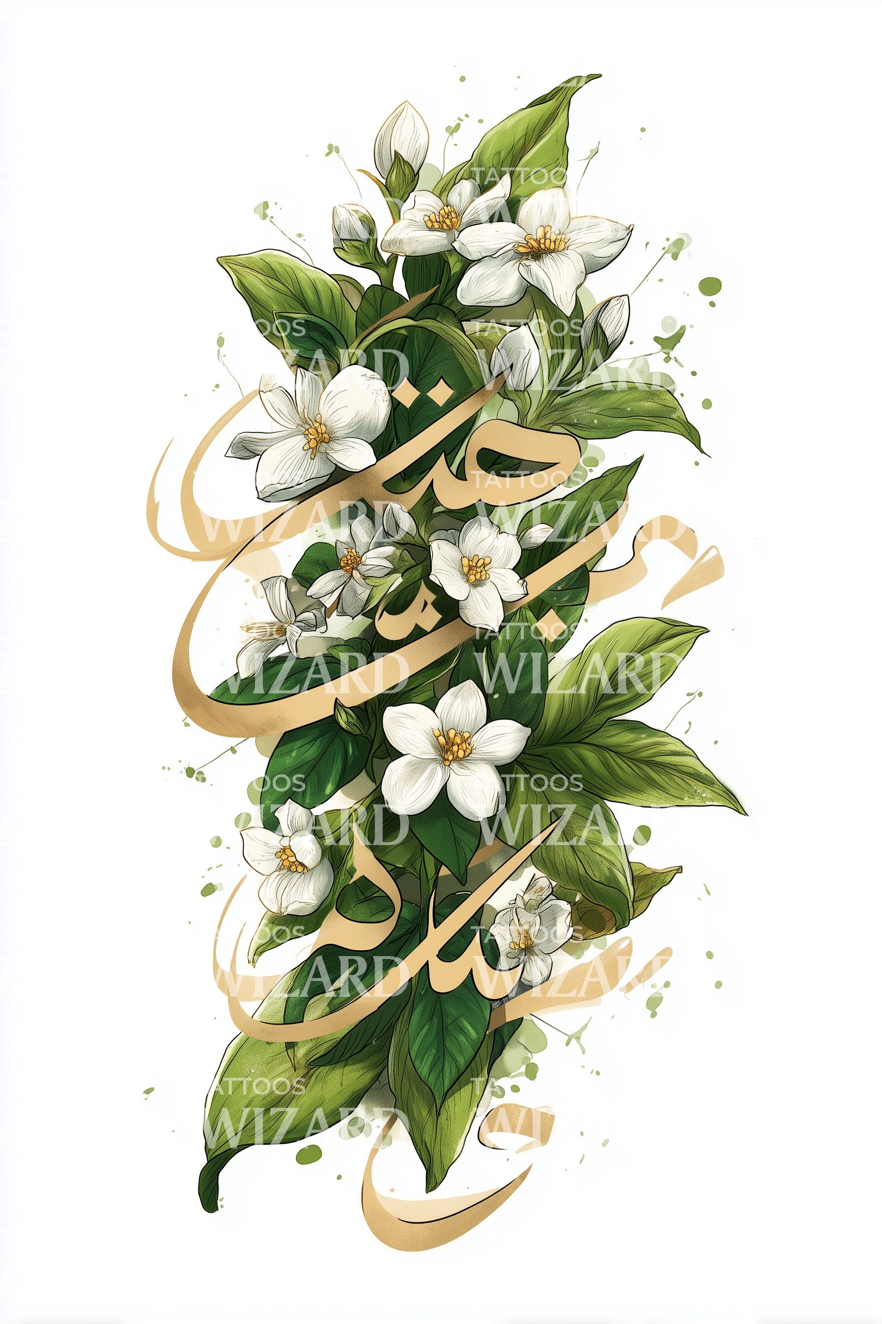 Immergiti nelle vibrazioni tropicali con questo disegno di tatuaggio ad acquerello, che fonde schizzi colorati con motivi di gelsomino. Il tatuaggio dipinge un'atmosfera vivida, unendo foglie rigogliose a tonalità vivaci. Racchiude l'essenza dei tropici in uno stile artistico ad acquerello, trasformando la tua pelle in una tela di bellezza naturale.