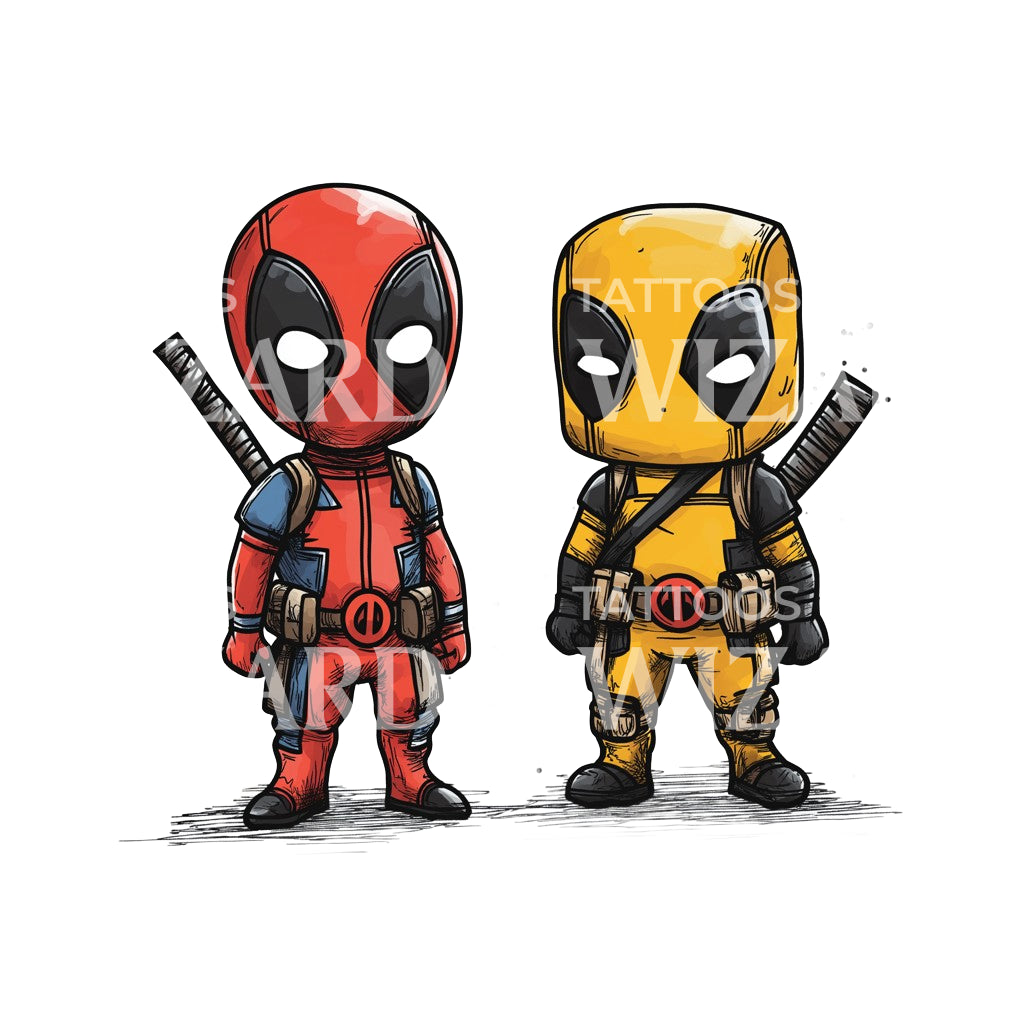 Idea di tatuaggio di Young Deadpool e Wolverine vestiti