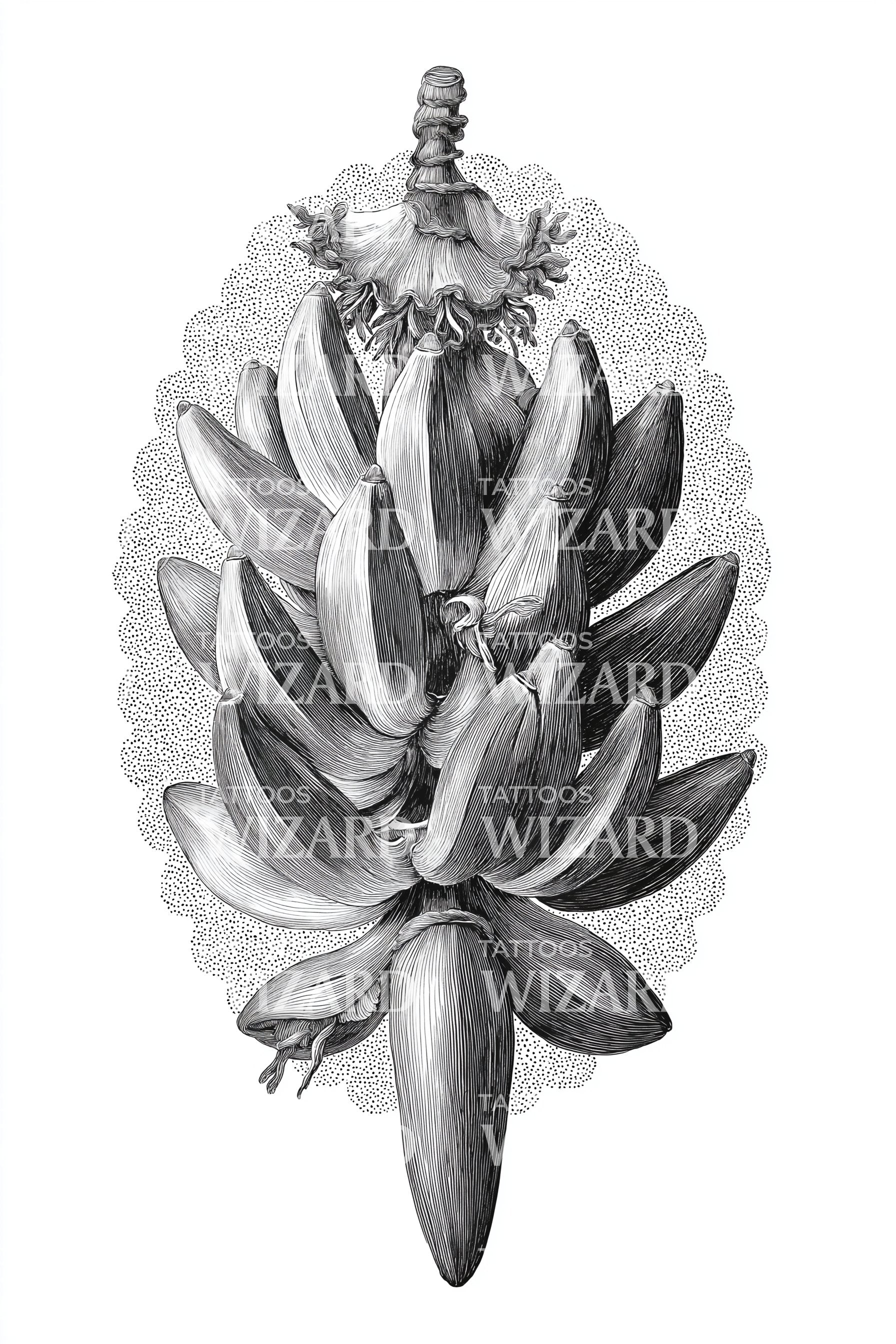 Ornate Banana Flower Tattoo Illustration