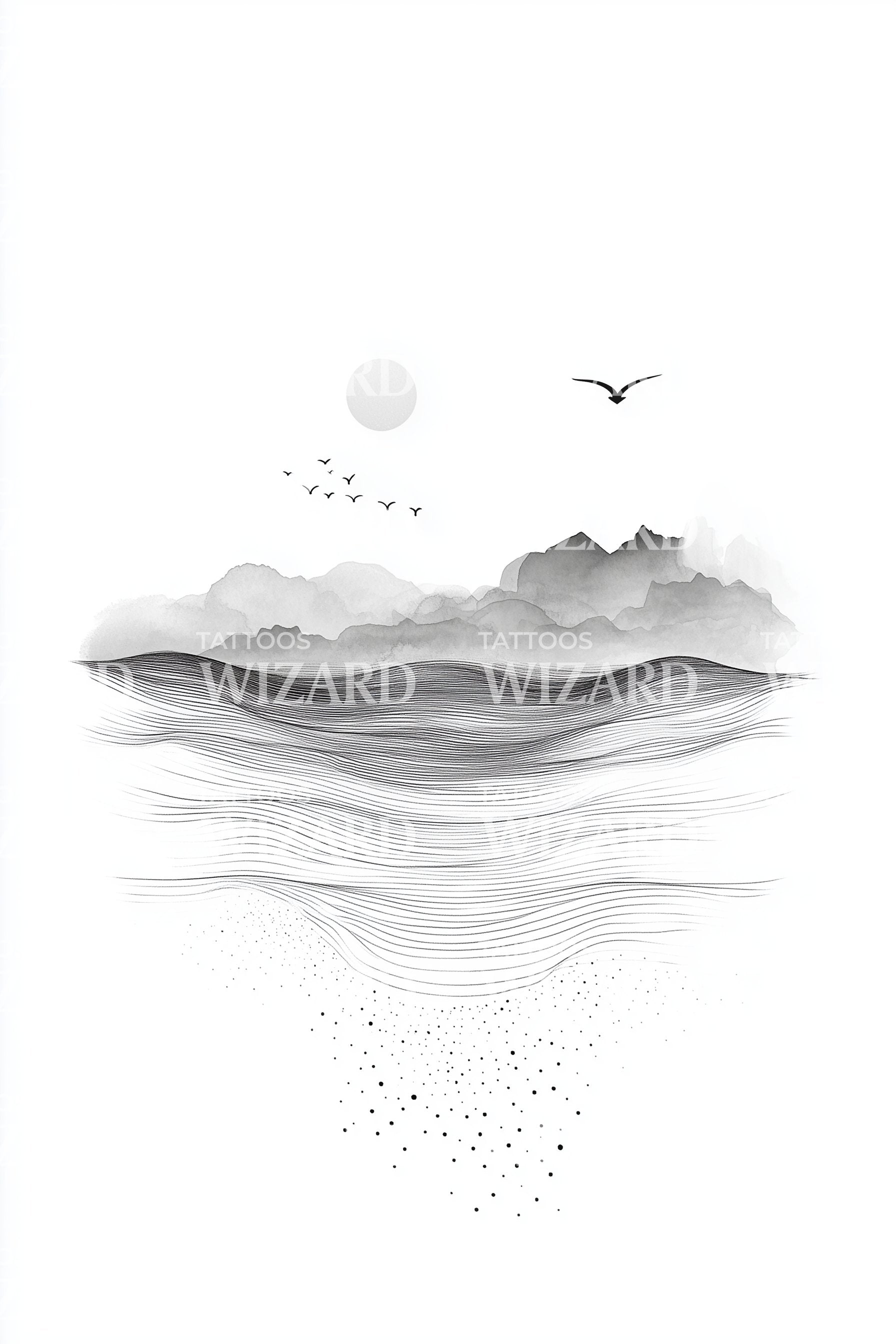 Misty Horizon Seascape Tattoo Design