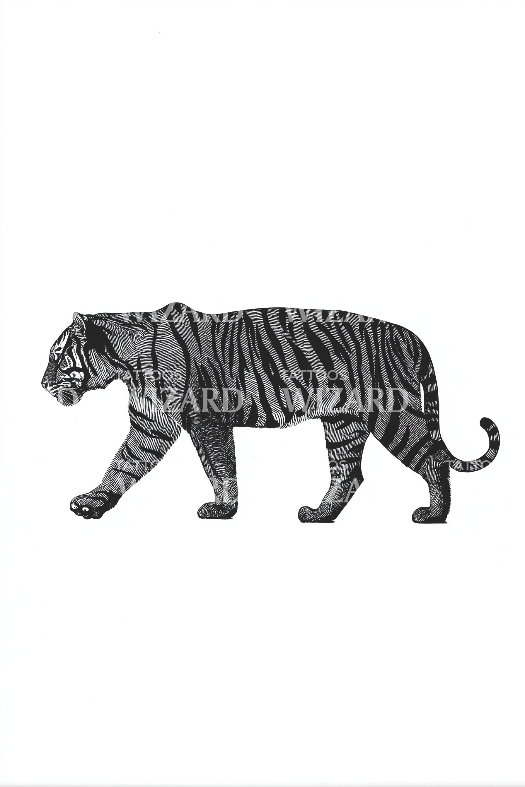 Stealth Tiger Linework Tattoo Design