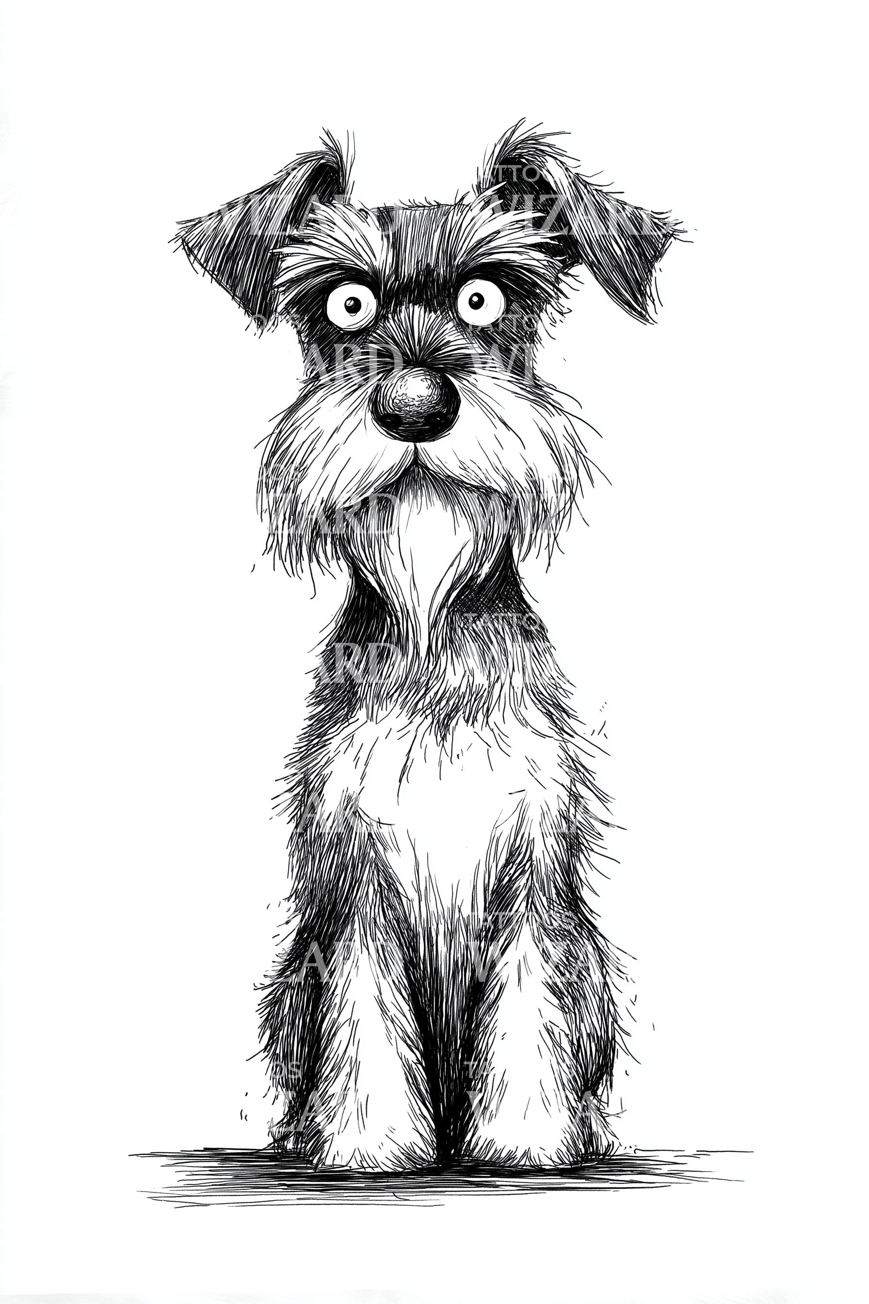 Alert Schnauzer lijnwerk tatoeage ontwerp