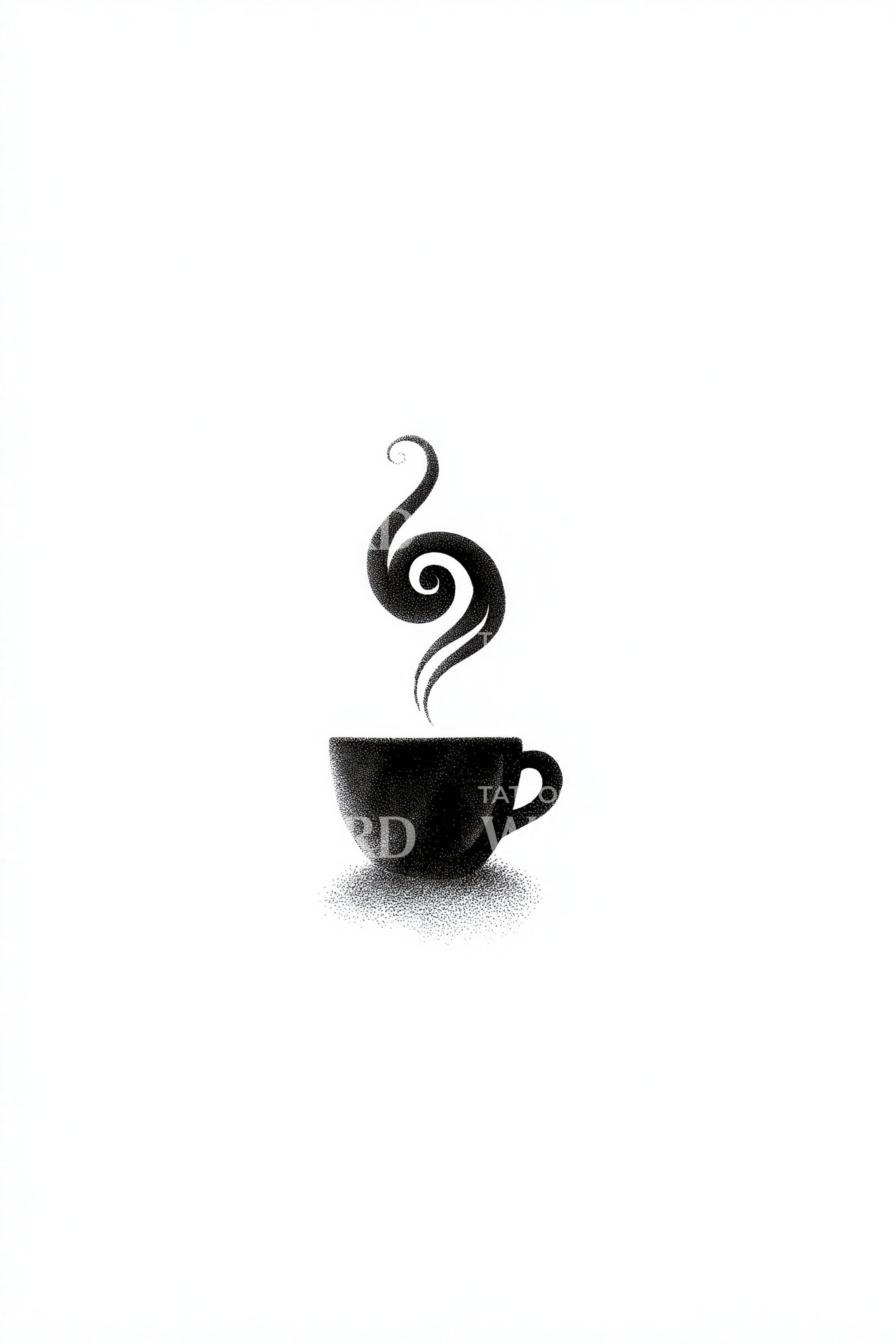 Word wakker met inkt, melodie en cafeïne. Deze illustratieve tatoeage toont een gestroomlijnde espressokop, waarvan de kringelende stoom verandert in muzieknoten die door de ochtendlucht dansen. Strakke lijnen, sterk contrast en zachte schaduwen creëren een gezellige sfeer—perfect voor koffieliefhebbers wiens hartslag synchroon loopt met muziek.