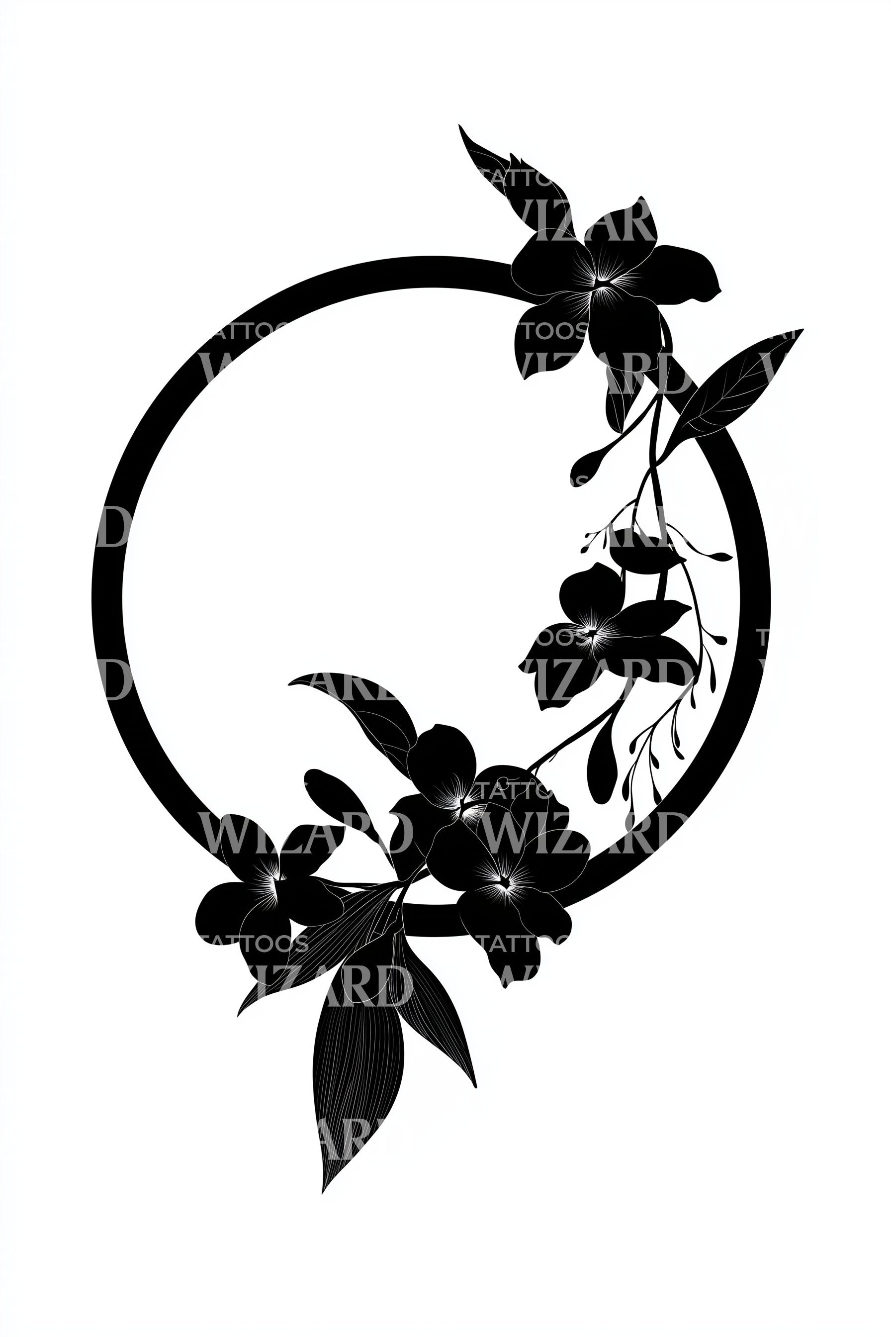 Midnight Bloom Ring Tattoo Ontwerp