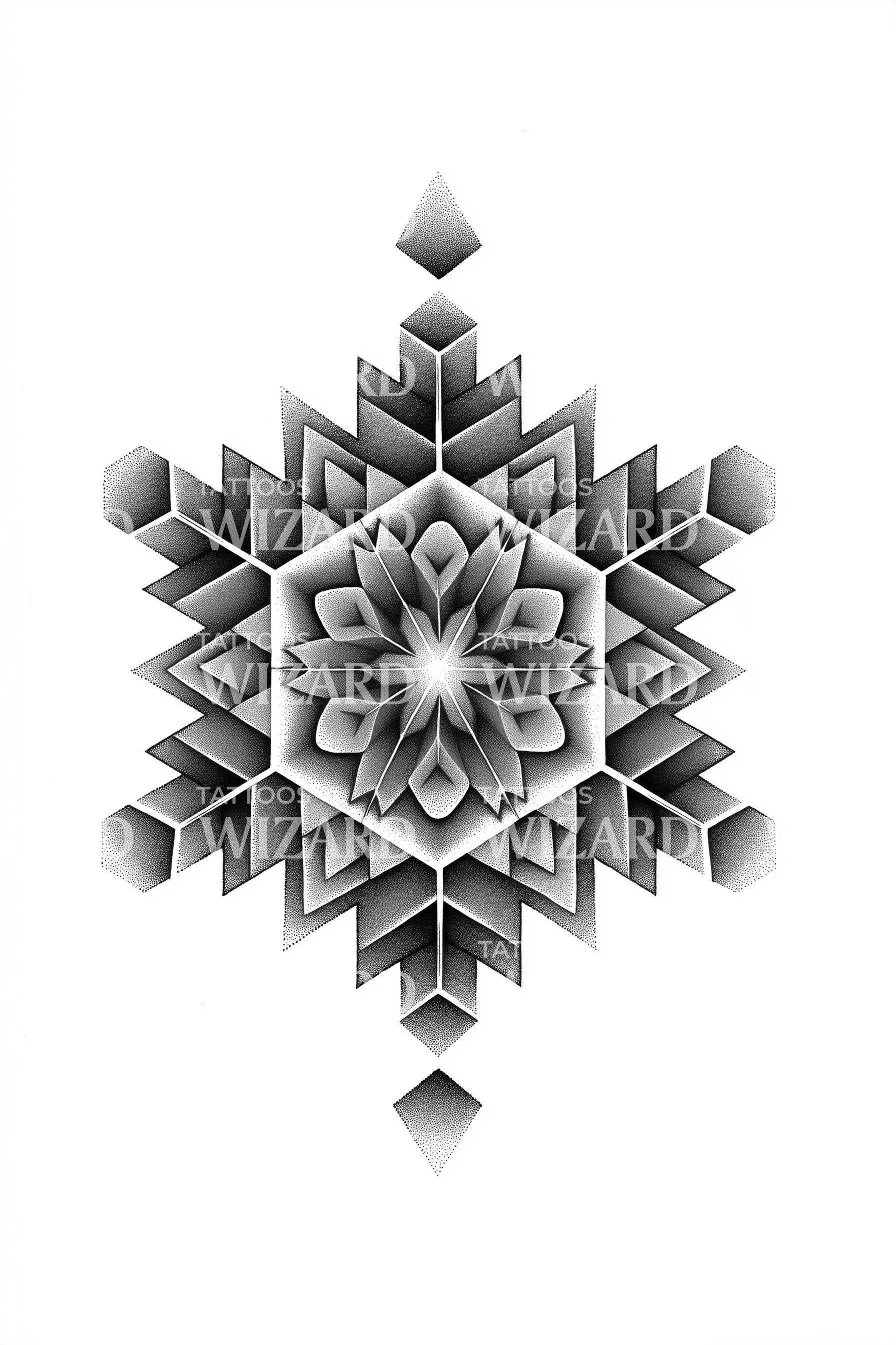 Carved in frost-kissed geometry, this mandala snowflake blooms from a hexagonal heart, layered with crystal petals and shadowed dotwork. Symmetry evokes calm clarity, winter’s hush, and the strength of stillness. Wearing it feels like quiet light on fresh snow, centering breath, sharpening purpose, and honoring singularity and wonder.