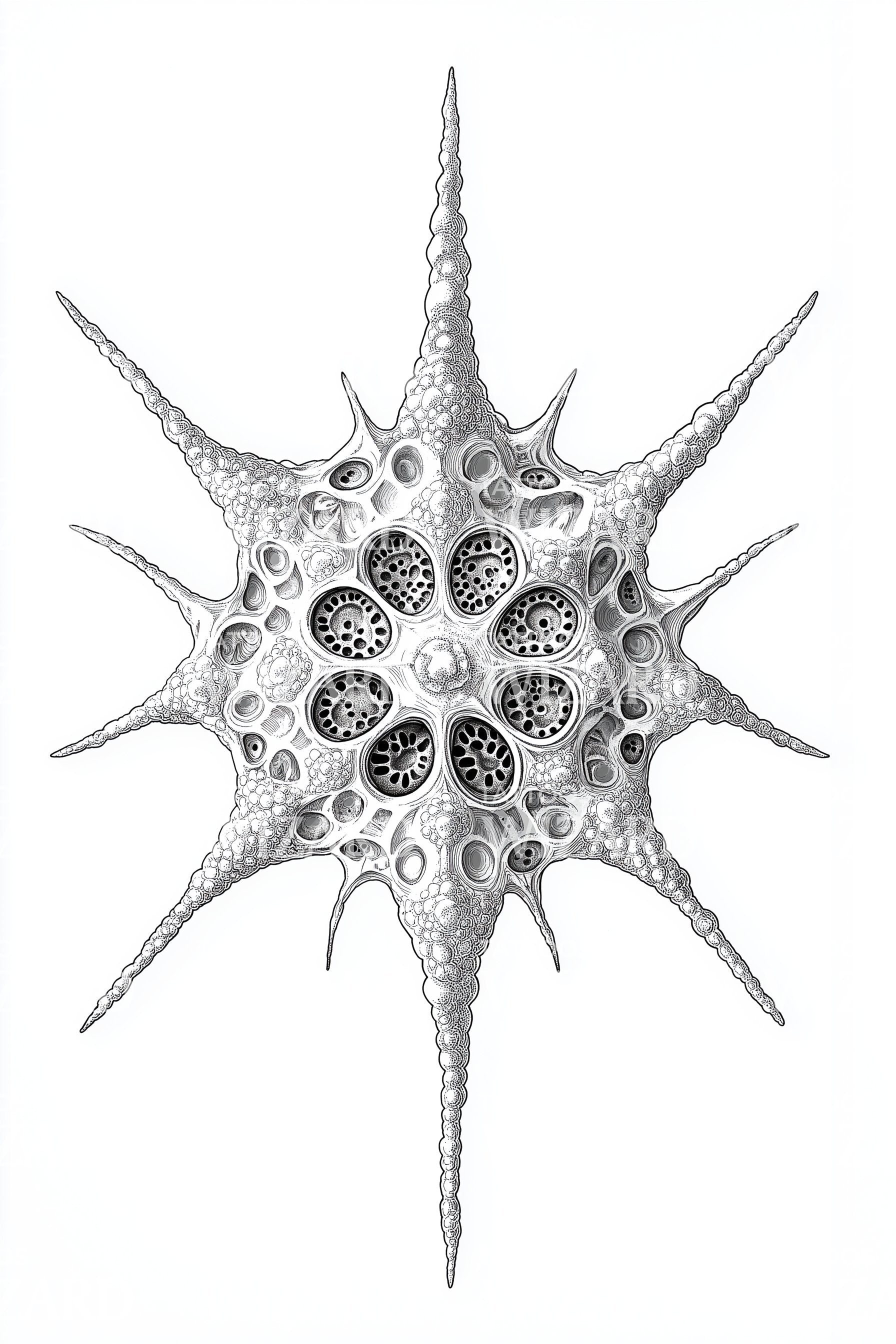 — Liam F. ✓ VerifiedRadiolarian burst, rendered in micro dotwork and stipple, speaks of a mind that survived pressure and turned it into architecture. Spikes declare boundaries without apology. Drawn to the quiet obsessive, the truth-keeper who builds beauty from grit. “Let the void learn your geometry.”