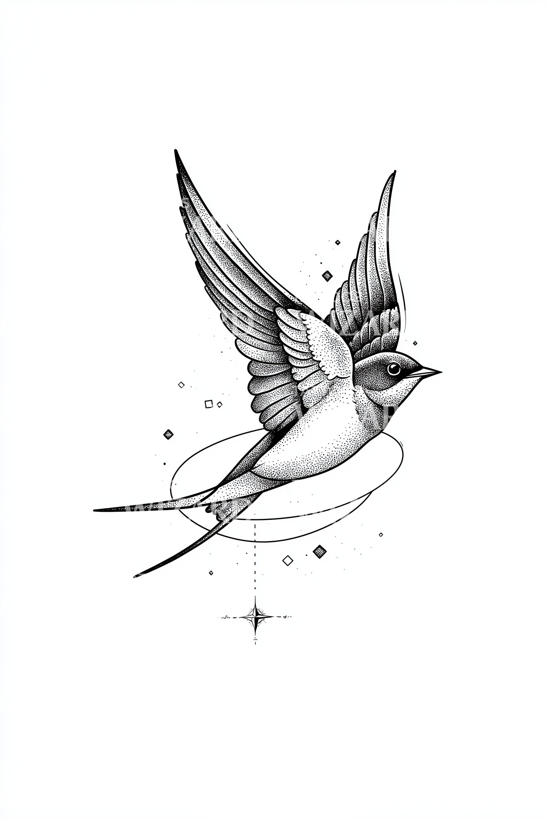 Flying Swallow Sparkle Tattoo Idea