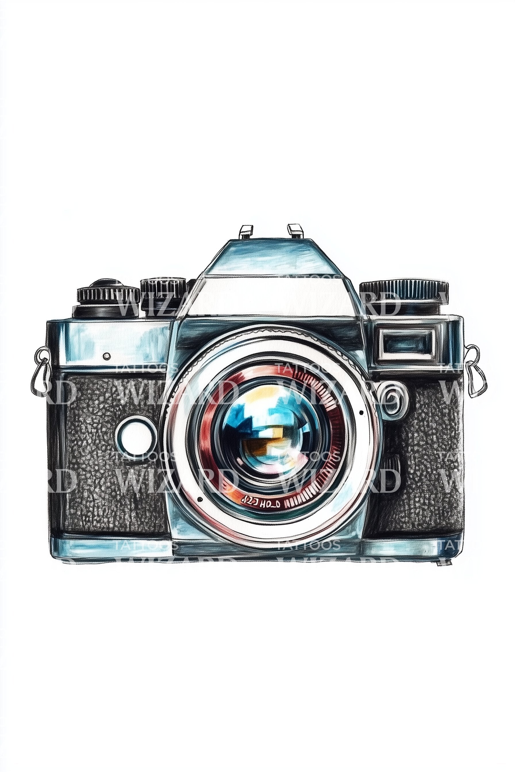 Fordyp deg i den nostalgiske sjarmen til dette vintage-kamera tatoveringsdesignet. En kunstnerisk hyllest til filmfotografi, med bemerkelsesverdig realisme og retro tiltrekning. En tidløs hyllest til fotografiets gullalder, perfekt for deg som brenner for å fange livets unike øyeblikk.