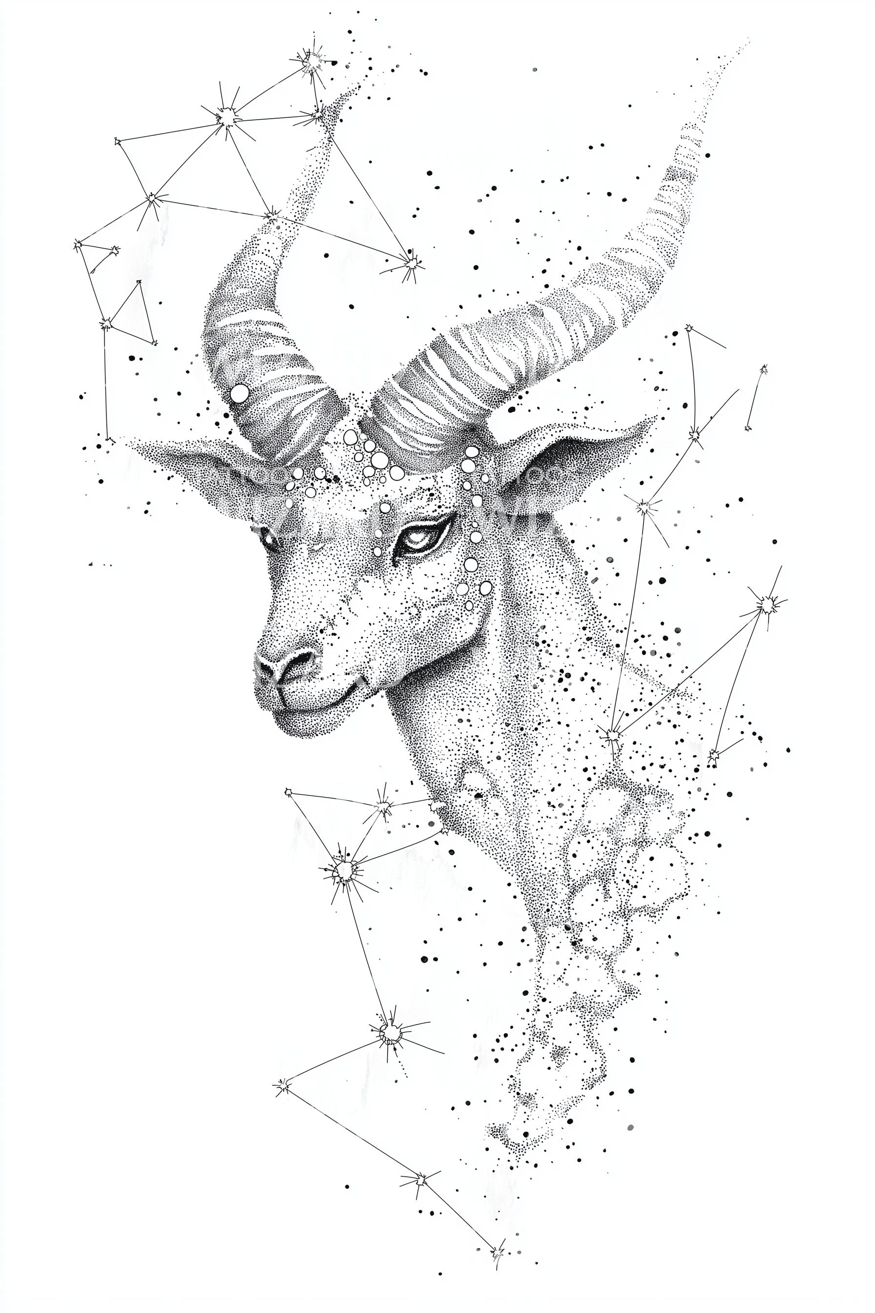 Starlit stag geometry rises in crisp geometric dotwork, antlers spiraling amid polygon constellations. The deer’s calm gaze speaks of guidance, grounded instinct meeting cosmic navigation. Symbols of resilience and renewal, these lines chart personal north. Wearing it feels steady and fearless, like night sky stitched to skin and heart.