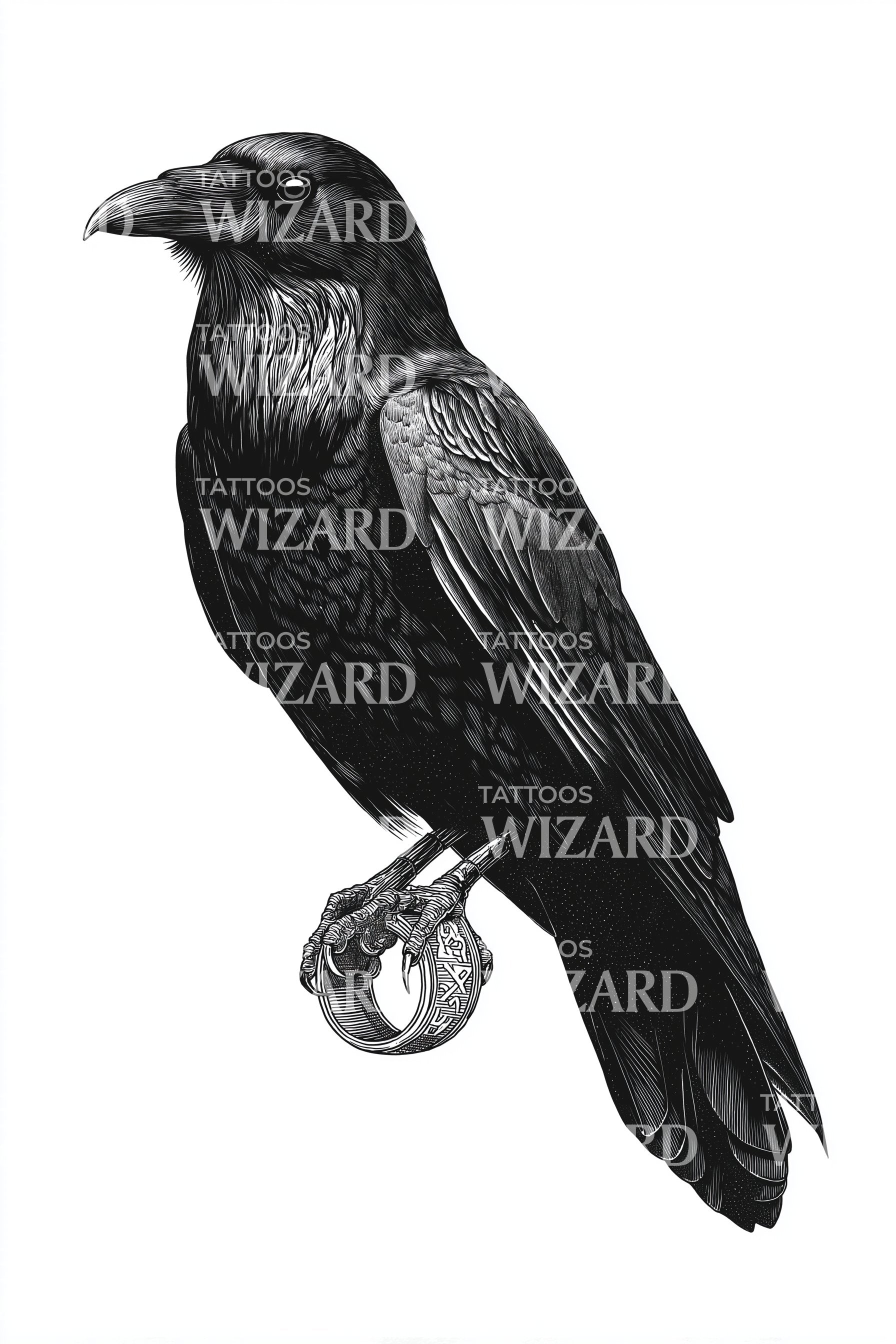 Raven Holding Ring Tattoo Idea