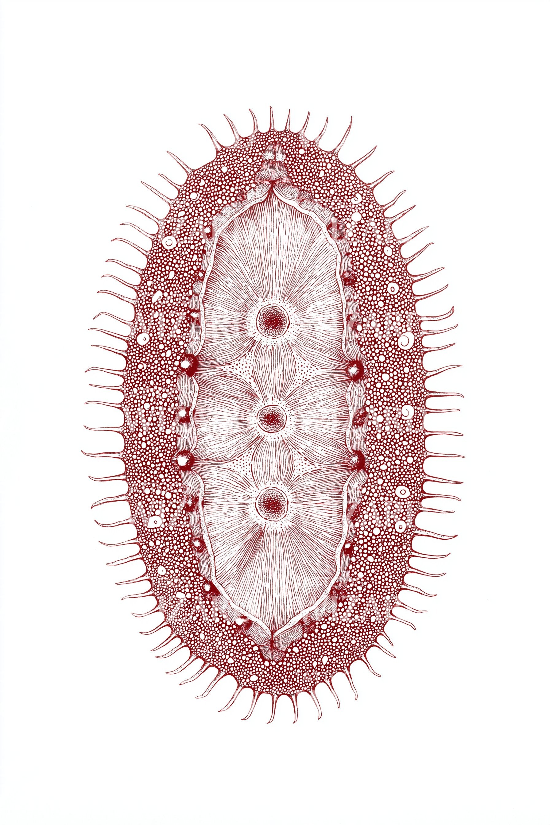 Spore as confession, an oval red prayer to biology’s quiet engines. For the one who trusts the body’s strange intelligence, who keeps growing after rupture, who turns fear into data. A cell teaching resilience in abstract. Three hearts of matter whisper, “divide, remember, become.”
