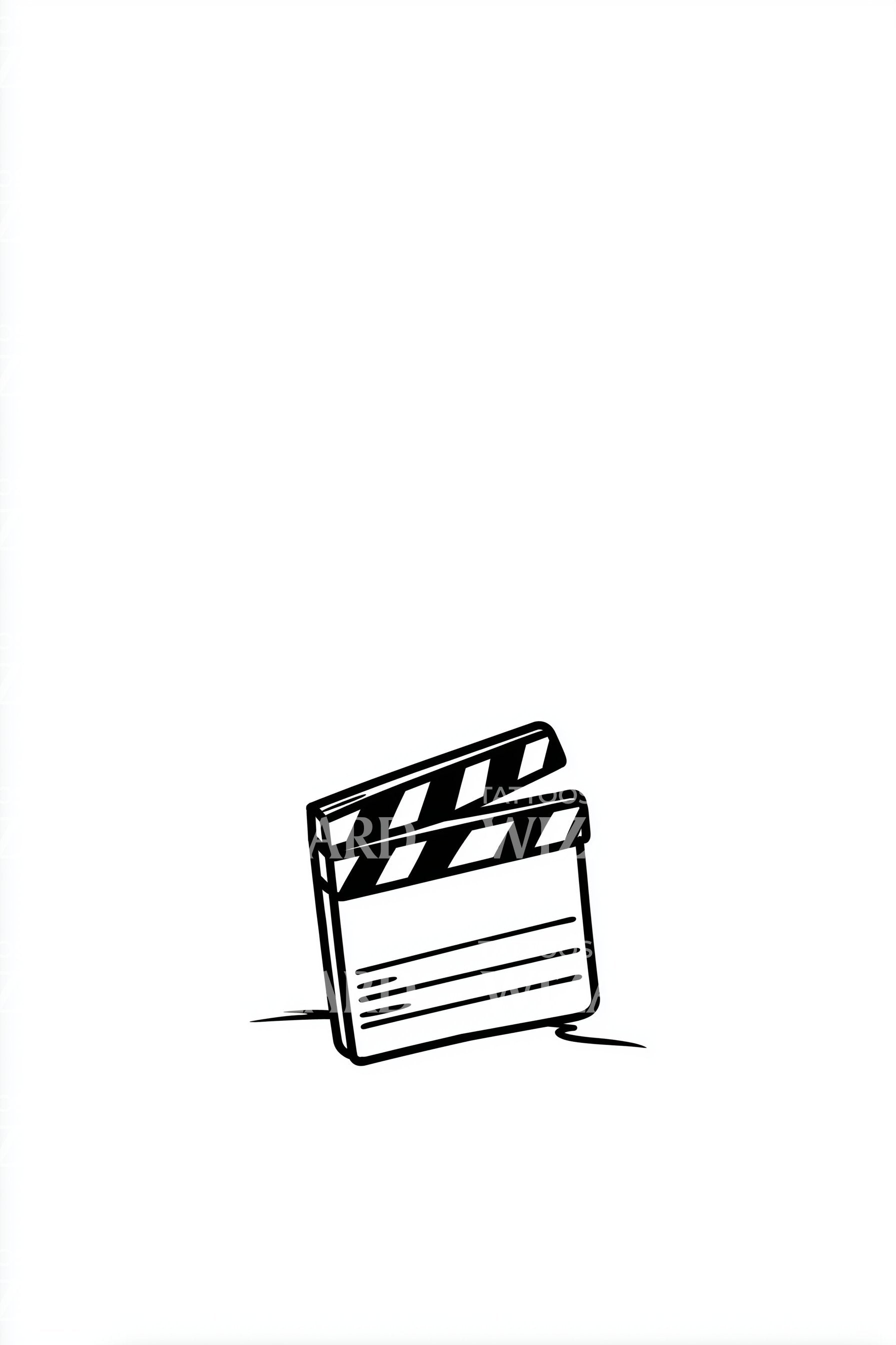 Crisp black lines sketch a vintage clapper tilted mid-action, minimal and playful in true newschool spirit. Retro cinema energy evokes red velvet curtains and projector hum. Symbol of fresh starts and brave edits, it honors every take. Worn daily, it inspires gutsy storytelling, nostalgia, and forward momentum.