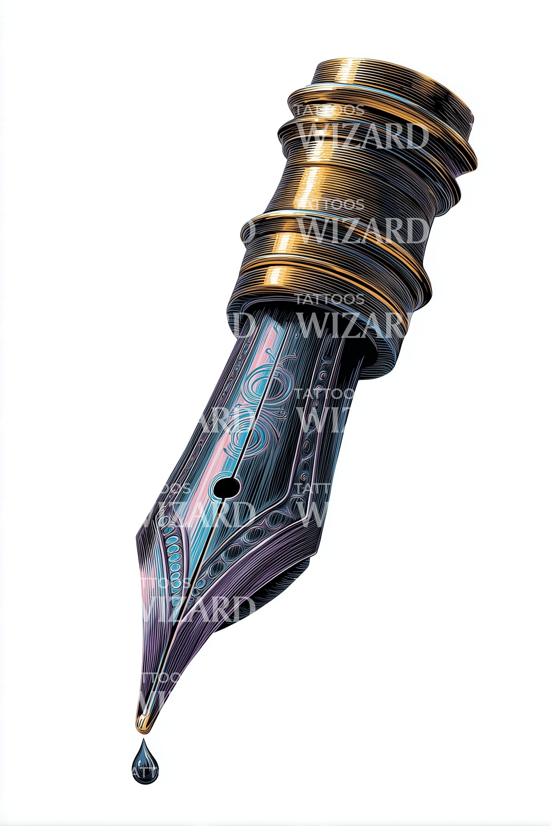 Ornate Calligraphy Nib Tattoo Illustration