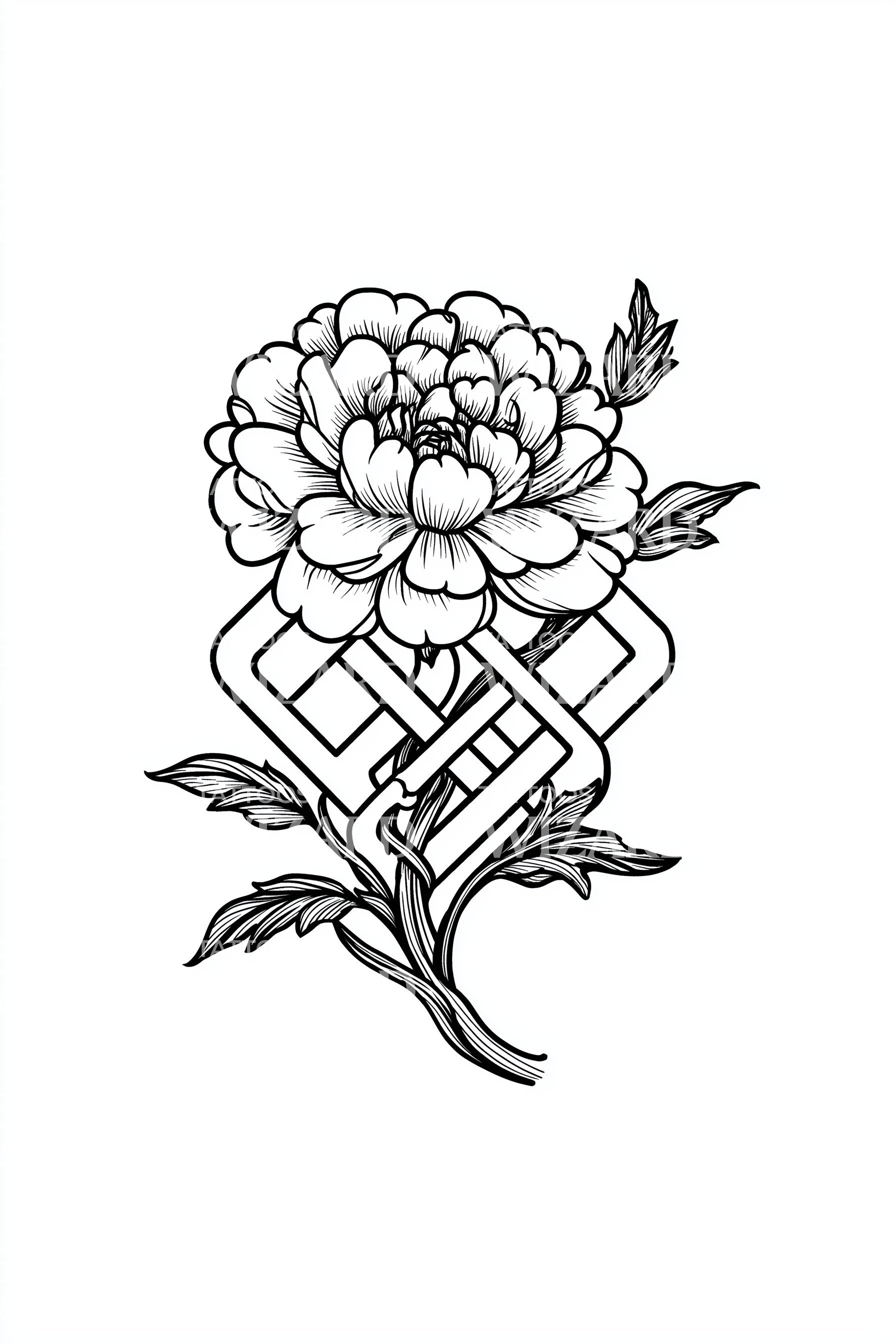 Projekt tatuażu z celtyckim węzłem i piwonią