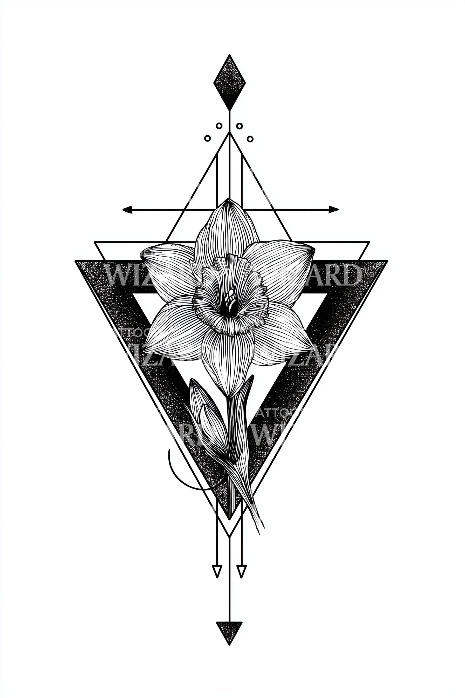 Doświadcz połączenia starożytnej symboliki z nowoczesną sztuką dzięki temu geometrycznemu wzorowi tatuażu. Ten projekt przedstawia idealnie proporcjonalną piramidę, zestawioną z delikatnie szczegółowym kwiatem. Jego misternie zaprojektowana oś tworzy wizualny kontrast, który gwarantuje wyjątkowy efekt estetyczny w każdym otoczeniu. Podnieś poziom swojego tatuażu dzięki temu nowoczesnemu, geometrycznemu arcydziełu.