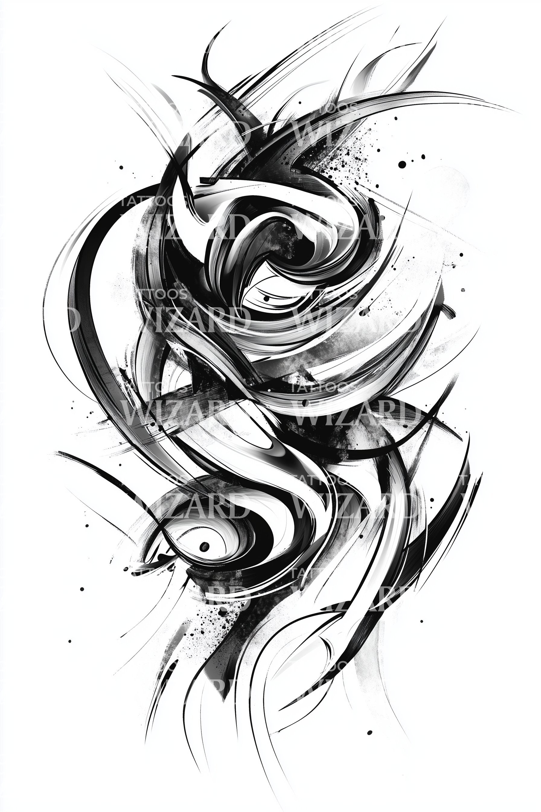 Experience body art like never before with this modern, minimalist tattoo design. An elegant showcase of abstract lines crafted in a flow of rich ink that results in a contemporary sketch style. This design encapsulates a unique balance between boldness and subtlety that will appeal to the modern minimalist.