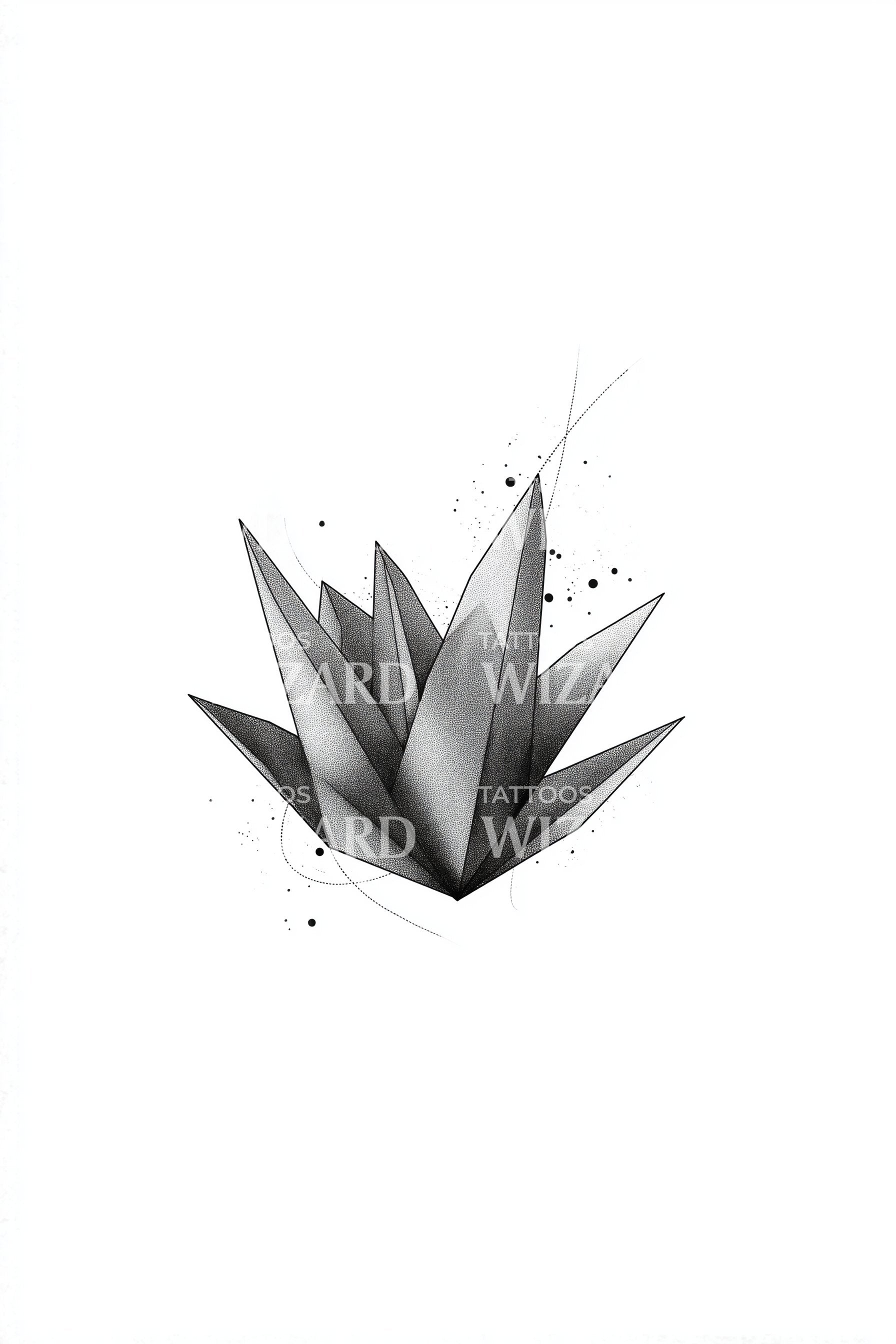 Immerse yourself in the beauty of nature with this black and grey agave tattoo design. The stunning monochrome geometry skillfully intertwines with the intricate succulent pattern, a testament to the unyielding life force of plants. Indulge in this timeless display of nature and artistry.
