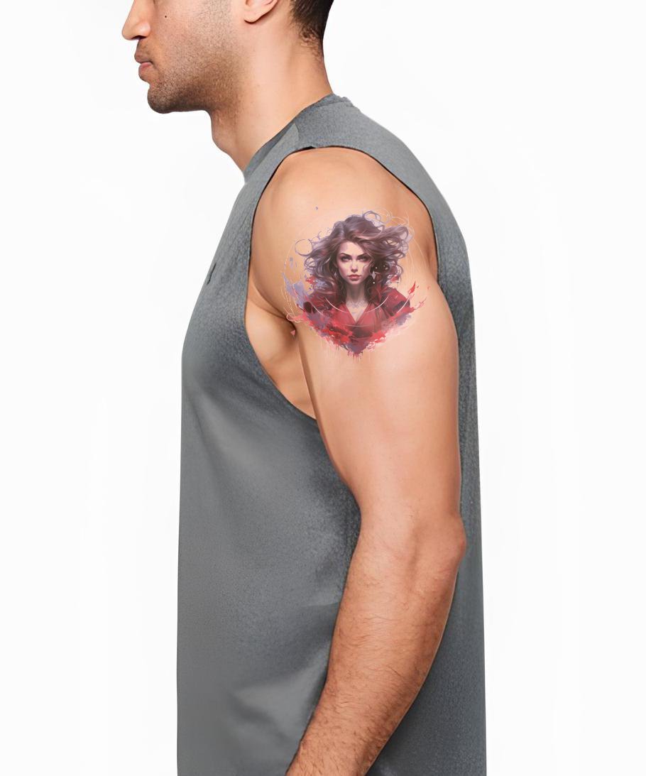 Unleash your inner superhero with our avant-garde Scarlet Witch Tattoo Design. This stunning illustrative piece boasts a beautiful fusion of anime and Marvel; showcasing our fierce witch, amidst a swirl of scarlet and blood. Make a powerful statement by embellishing your skin with this vibrant, bewitching artwork.